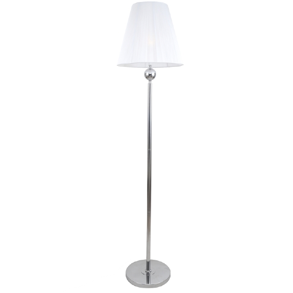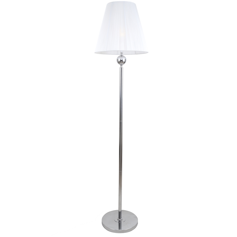Торшер из коллекции Nifty выполнен из металла, гальванизированного в цвет хрома. Текстильный абажур белого цвета создает мягкий рассеянный свет.