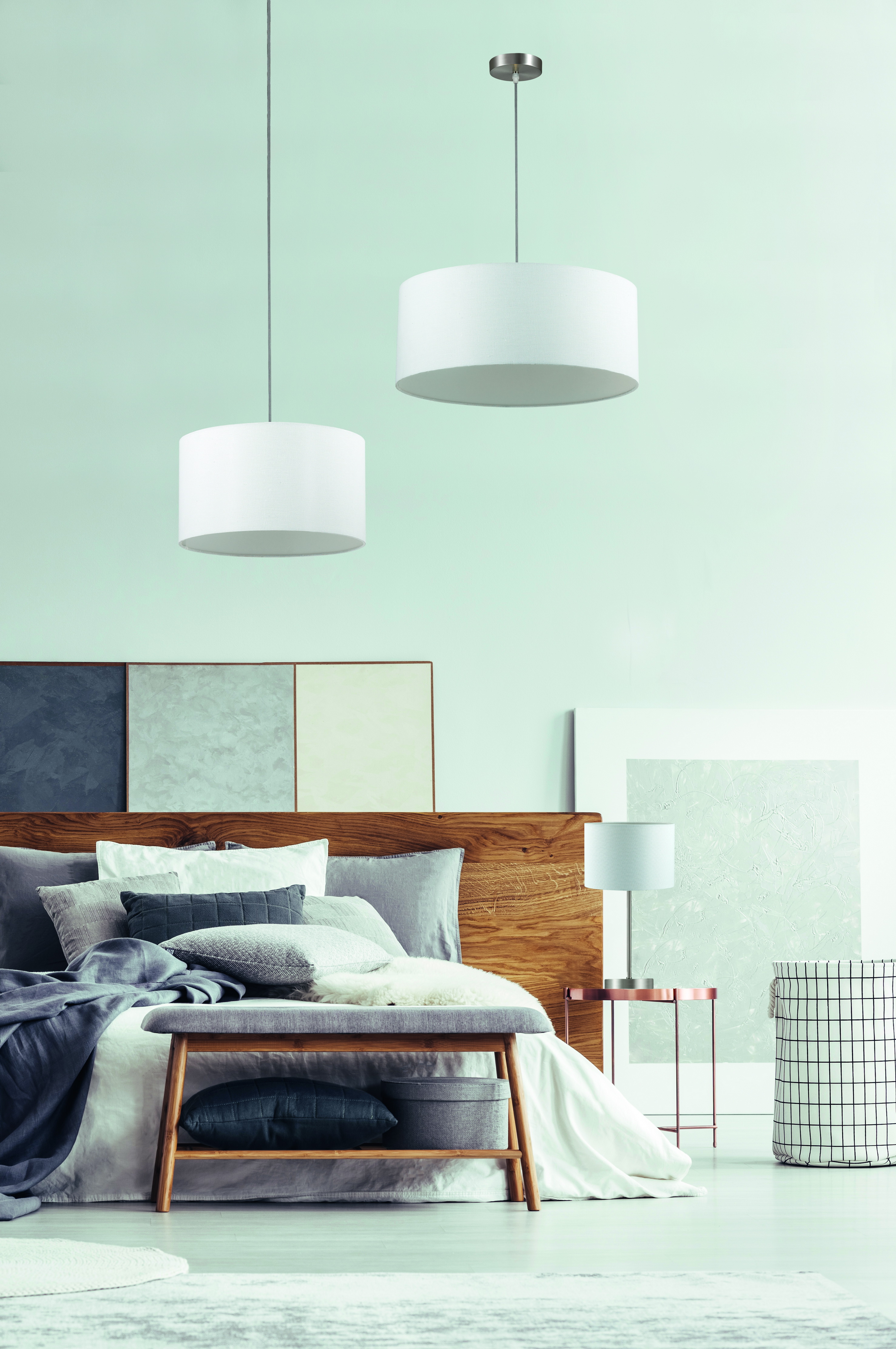 Лаконичная серия Nikki, выполненная в цвете никель с белыми текстильными абажурами отлично подойдет как для гостиниц, так и для домашних интерьеров.