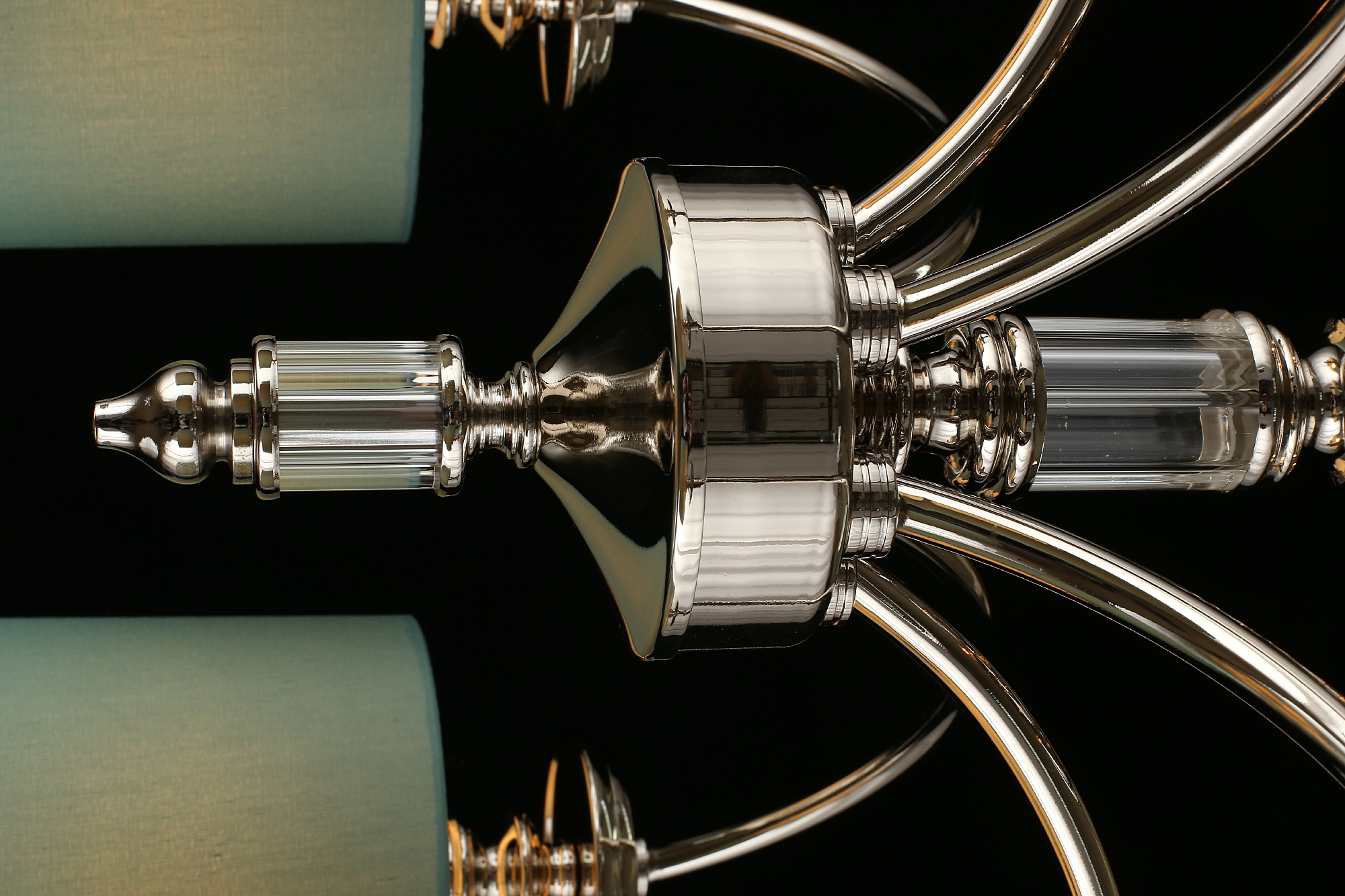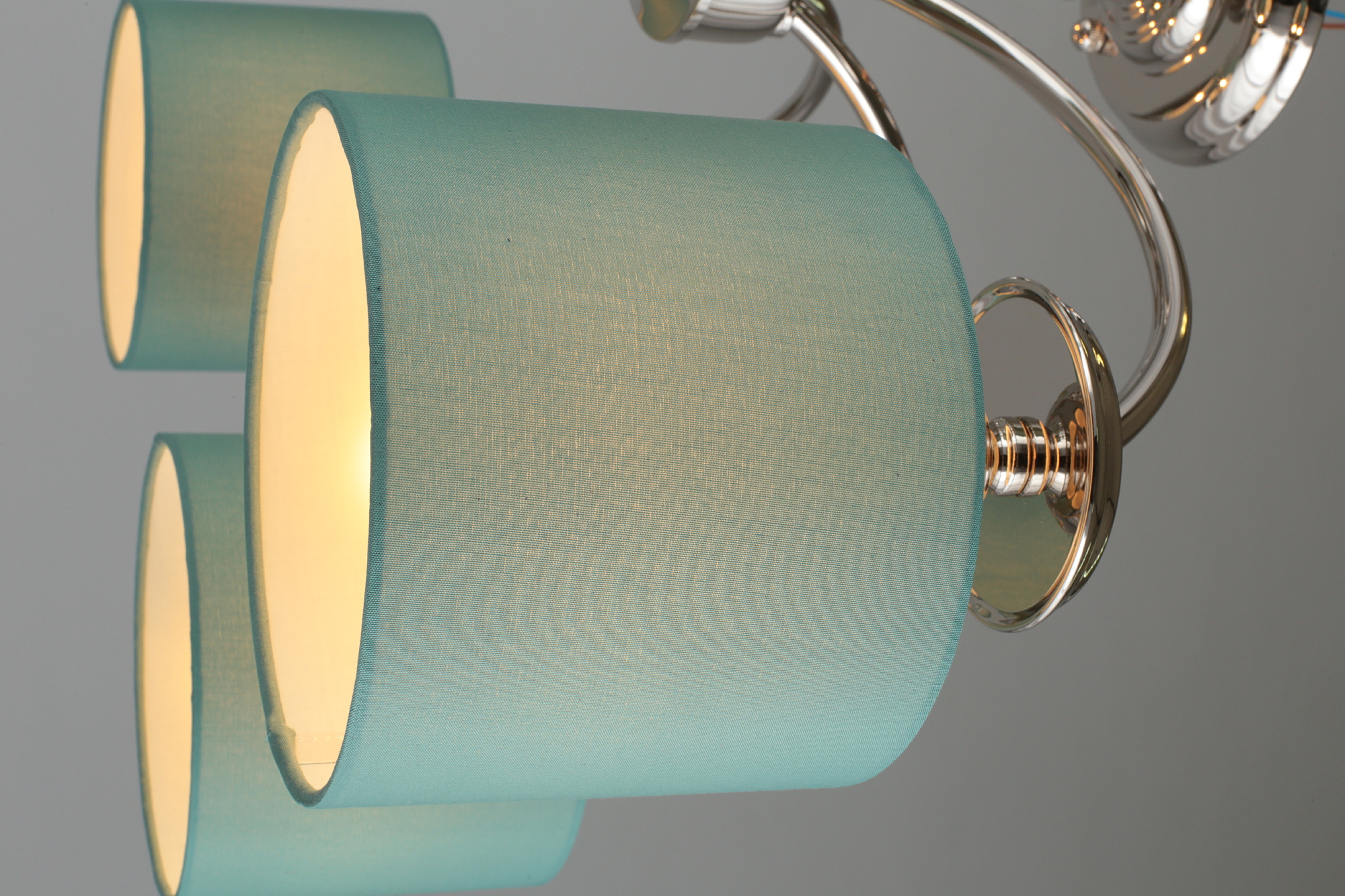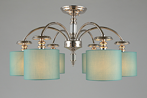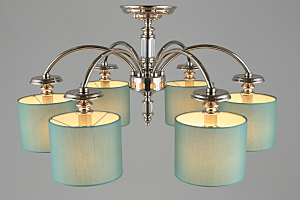 Допускается отличие страны-изготовителя, указанной в характеристиках. Линии производства могут находиться в нескольких государствах. Это не влияет на качество изготовления товара: все заводы данного бренда работают по общим стандартам, а готовые изделия проходят соответствующий контроль.Польша Коллекция Nikolet ЦветЦвет арматуры Хром Цвет Бирюзовый Материал арматуры Металл Цвет декора прозрачный Цвет плафона бирюзовый Материал декора Хрусталь Материал плафона Ткань РазмерыВысота (мм) 380 Диаметр (мм) 700 Ширина (мм) 700 ЭлектрикаКоличество ламп (шт) 6 Цоколь E14 Лампочки в комплекте Нет в комплекте Мощность лампы (Вт) 40 Общая мощность (Вт) 240 Световой поток 2520 Дополнительная информацияСпособ крепления Планка Степень защиты (IP) IP20 Вес (Кг) 3.4 -