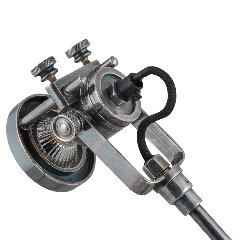 Допускается отличие страны-изготовителя, указанной в характеристиках. Линии производства могут находиться в нескольких государствах. Это не влияет на качество изготовления товара: все заводы данного бренда работают по общим стандартам, а готовые изделия проходят соответствующий контроль.Россия ЦветЦвет арматуры состаренное серебро Цвет Серебро Материал арматуры Латунь РазмерыВысота (мм) 480 Диаметр (мм) 140 Ширина (мм) 140 ЭлектрикаКоличество ламп (шт) GU10/25Вт Цоколь GU10 Мощность лампы (Вт) 25 Дополнительная информацияТип выключателя Выключатель на шнуре Вес (Кг) 2.7 Техническая оссобеность Регулируемая по наклону -