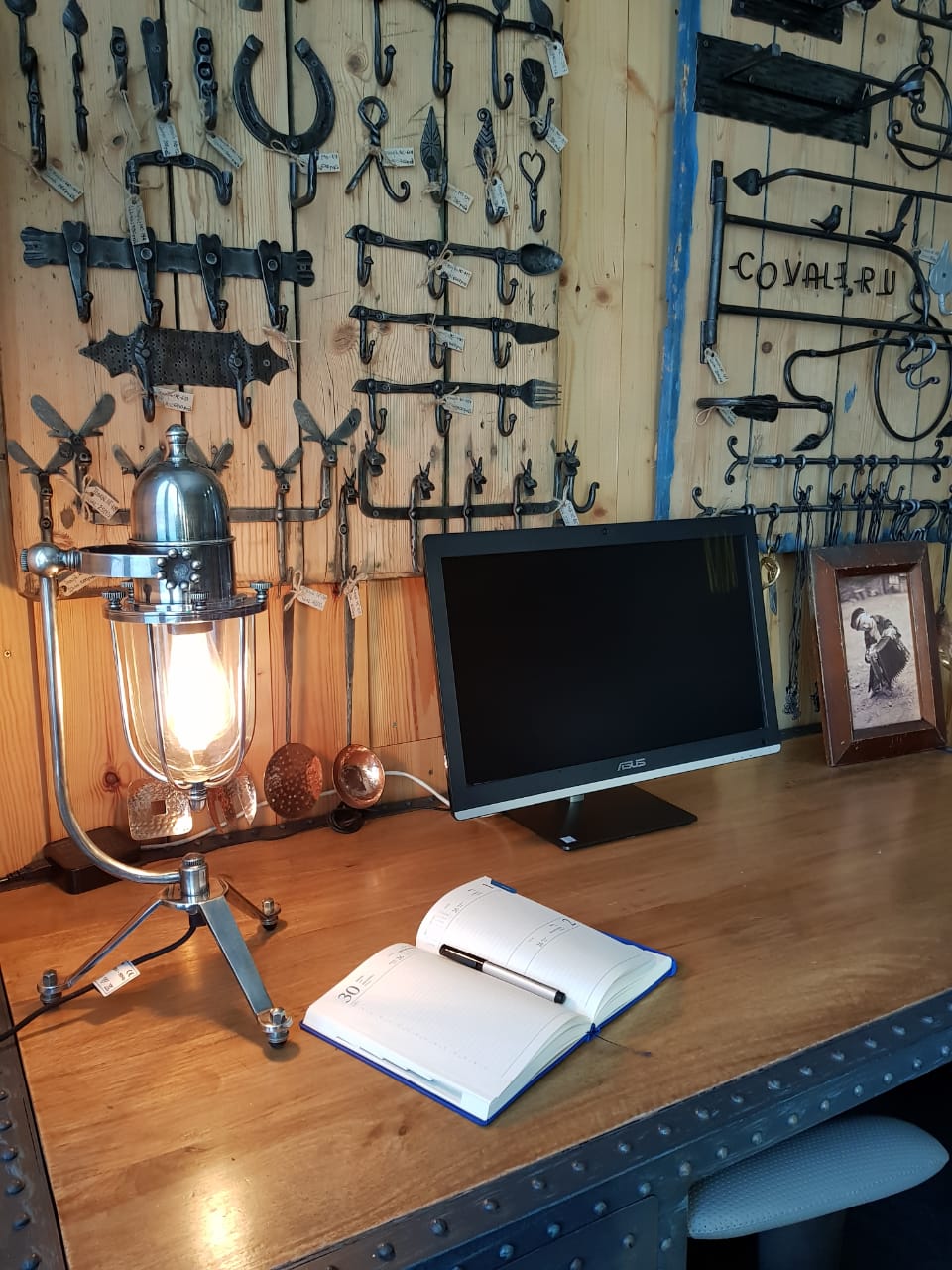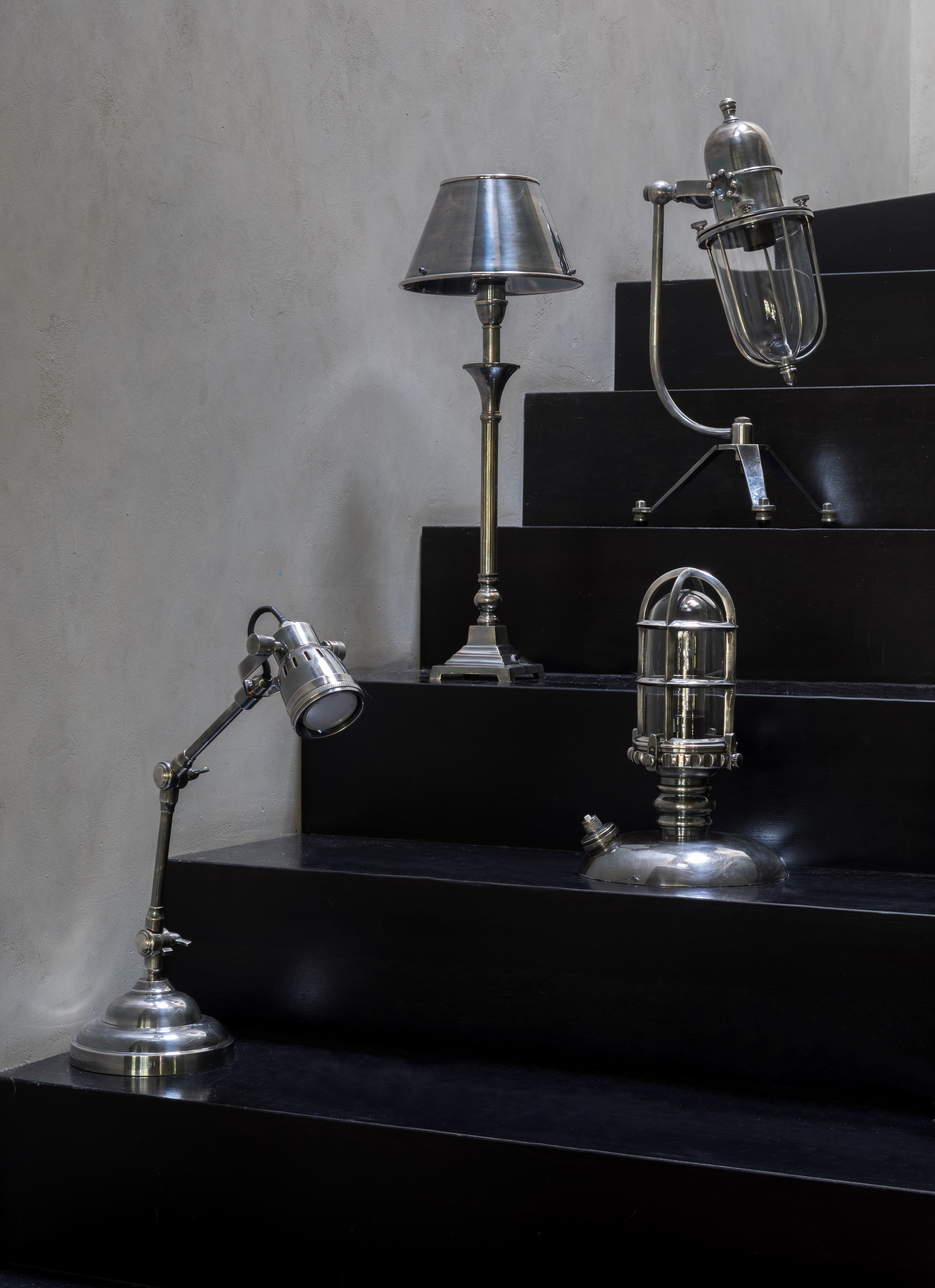 Настольная лампа из латуни на треноге со стеклянным колпачком - это просто любовь с первого взгляда....Пять винтов крепко прижимают стеклянную колбу к латунному основанию через силиконовую прокладку. Они легко откручиваются и замена лампы доставляет просто эстетическое наслаждение. Барашки-цветочки по бокам плафона регулируют его угол наклона Все элементы выполнены вручную с применением современных технологий. Тот самый случай, когда это не только дорого выглядит, но и отлично работает.