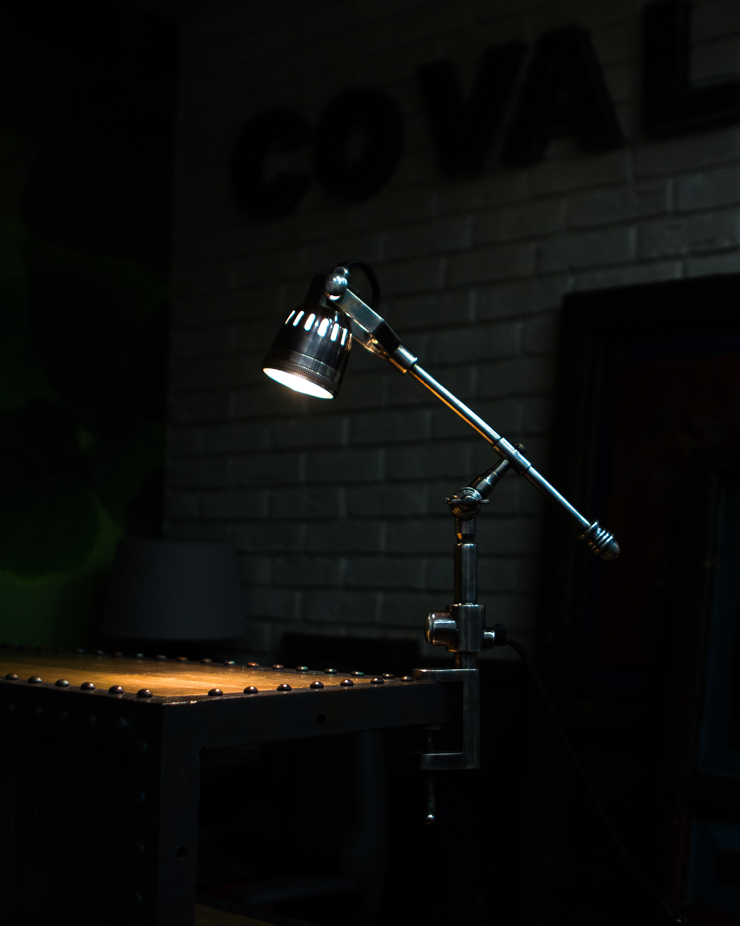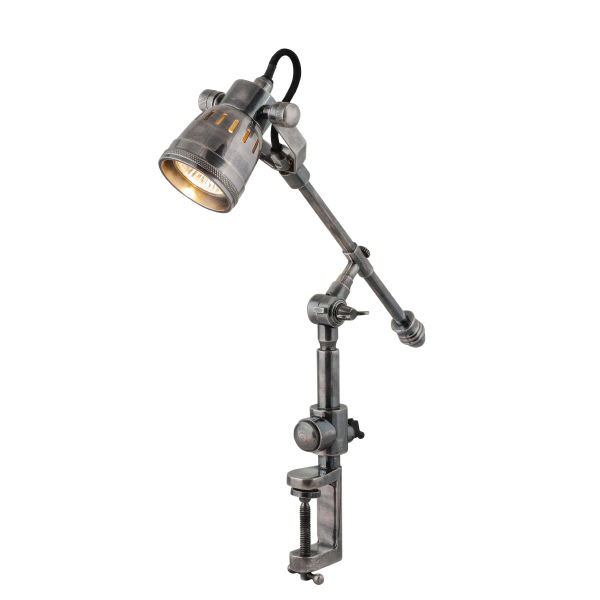 Настольная лампа на струбцине с двойным поворотным плечом-незаменимая вещь в любом интерьере. Очень хороший, направленный свет и удобное крепление к краю стола делают возможным ее применение в различных интерьерных стилях и помещениях. Резьбовое соединение внешнего ободка плафона делает процедуру замены лампочки простым и незаметнымК этой модели вы можете подобрать торшер и настенные светильники из этой же коллекции.