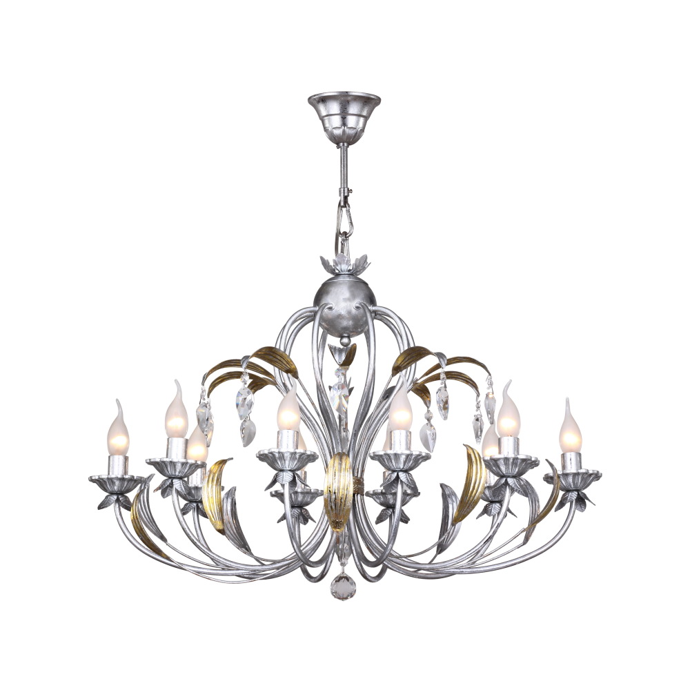 Допускается отличие страны-изготовителя, указанной в характеристиках. Линии производства могут находиться в нескольких государствах. Это не влияет на качество изготовления товара: все заводы данного бренда работают по общим стандартам, а готовые изделия проходят соответствующий контроль.Китай Коллекция Noel ЦветЦвет арматуры Серебро Цвет Серебро Материал арматуры Металл РазмерыВысота (мм) 500 Длина (мм) 800 Ширина (мм) 470 ЭлектрикаКоличество ламп (шт) 10 Цоколь E14 Тип лампы Накаливания, Энергосберегающая (КЛЛ) Мощность лампы (Вт) 40 Напряжение (В) 220 Дополнительная информацияСтепень защиты (IP) IP20 Тип подвеса На цепи -