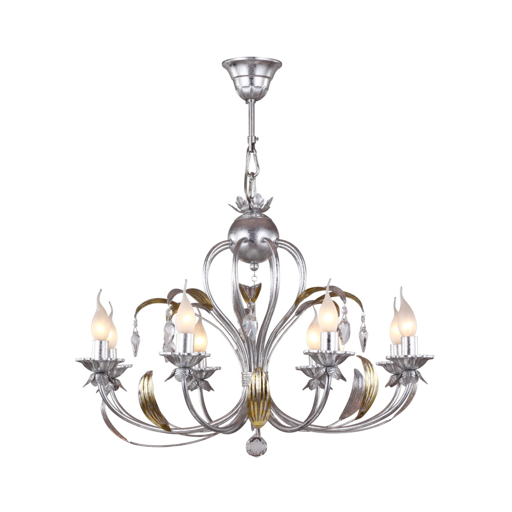 Допускается отличие страны-изготовителя, указанной в характеристиках. Линии производства могут находиться в нескольких государствах. Это не влияет на качество изготовления товара: все заводы данного бренда работают по общим стандартам, а готовые изделия проходят соответствующий контроль.Китай Коллекция Noel ЦветЦвет арматуры Серебро Цвет Серебро Материал арматуры Металл РазмерыВысота (мм) 450 Диаметр (мм) 710 Ширина (мм) 710 ЭлектрикаКоличество ламп (шт) 8 Цоколь E14 Тип лампы Накаливания, Энергосберегающая (КЛЛ) Мощность лампы (Вт) 40 Напряжение (В) 220 Дополнительная информацияСтепень защиты (IP) IP20 Тип подвеса На цепи -