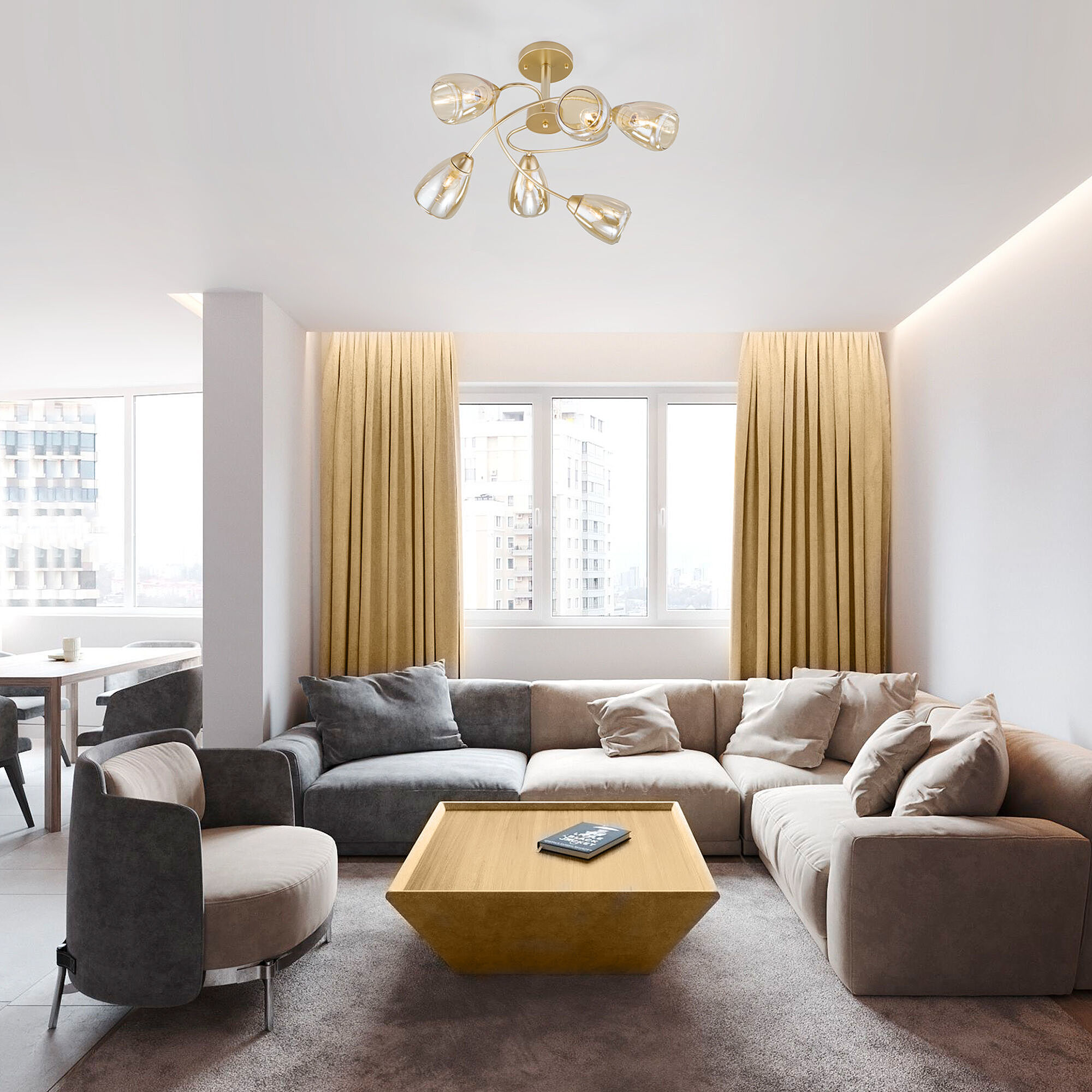 Допускается отличие страны-изготовителя, указанной в характеристиках. Линии производства могут находиться в нескольких государствах. Это не влияет на качество изготовления товара: все заводы данного бренда работают по общим стандартам, а готовые изделия проходят соответствующий контроль.Китай Коллекция Noemi ЦветЦвет арматуры Золото Цвет Золото Материал арматуры Металл Цвет плафона янтарный Материал плафона Стекло РазмерыВысота (мм) 430 Длина (мм) 720 Ширина (мм) 720 ЭлектрикаКоличество ламп (шт) 6 Цоколь E27 Мощность лампы (Вт) 60 Напряжение (В) 220 Площадь освещения 24 Дополнительная информацияСпособ крепления Планка Степень защиты (IP) IP20 -