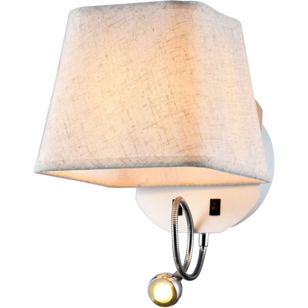 Бра 2067/01/02W Stilfort коллекции Nola - настенный светильник выполненный в стиле модерн. Арматура изготовлена из металла двух цветов - "белый" и "хром". Плафон из ткани нежного бежевого оттенка.