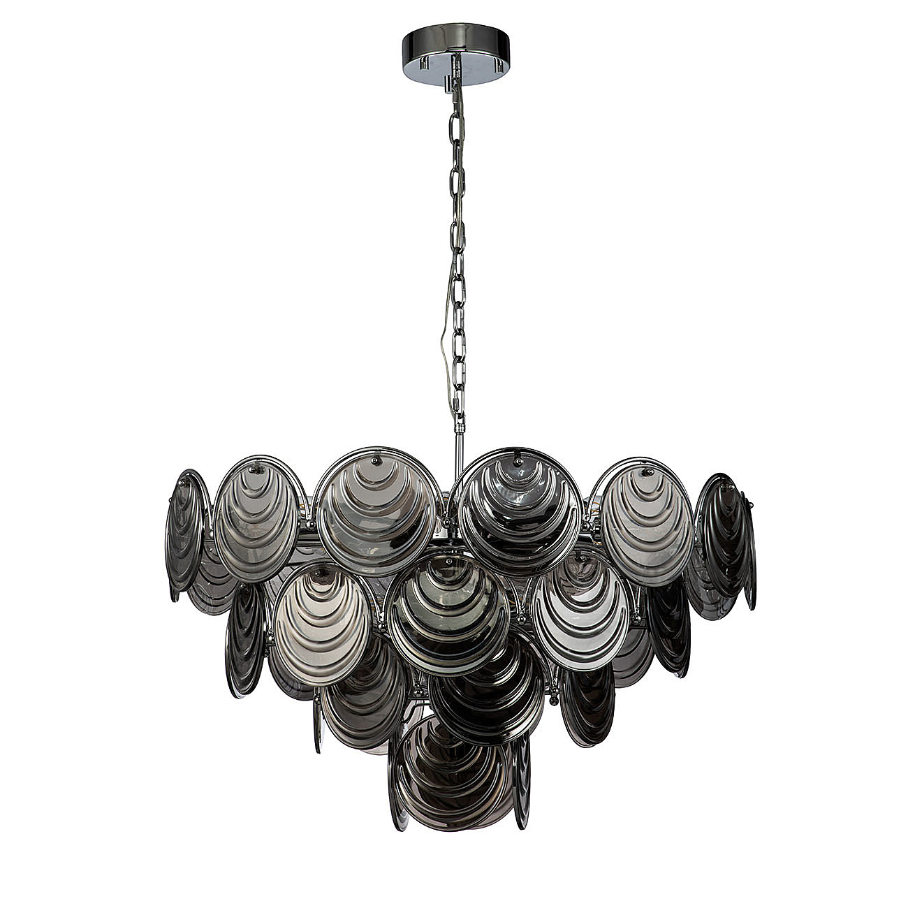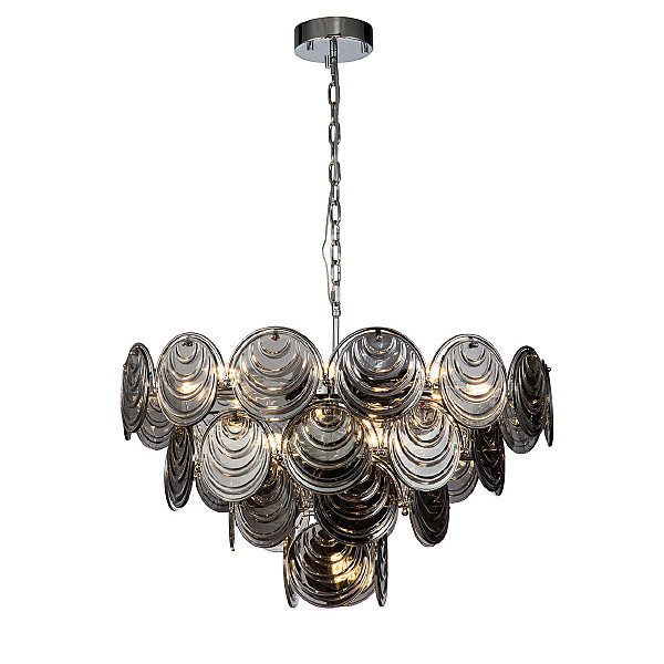 Допускается отличие страны-изготовителя, указанной в характеристиках. Линии производства могут находиться в нескольких государствах. Это не влияет на качество изготовления товара: все заводы данного бренда работают по общим стандартам, а готовые изделия проходят соответствующий контроль.Великобритания Коллекция Notte ЦветЦвет арматуры Хром Цвет Хром Материал арматуры Металл Цвет плафона дымчатый Материал плафона Стекло РазмерыВысота (мм) 1000 Длина (мм) 800 Высота минимальная (мм) 490 Ширина (мм) 800 Диаметр абажура-плафона 150 Высота абажура-плафона 5 ЭлектрикаКоличество ламп (шт) 13 Цоколь E14 Мощность лампы (Вт) 40 Напряжение (В) 220 Площадь освещения 38 Дополнительная информацияСпособ крепления Планка Степень защиты (IP) IP20 Вес (Кг) 17.26 Тип подвеса На цепи -