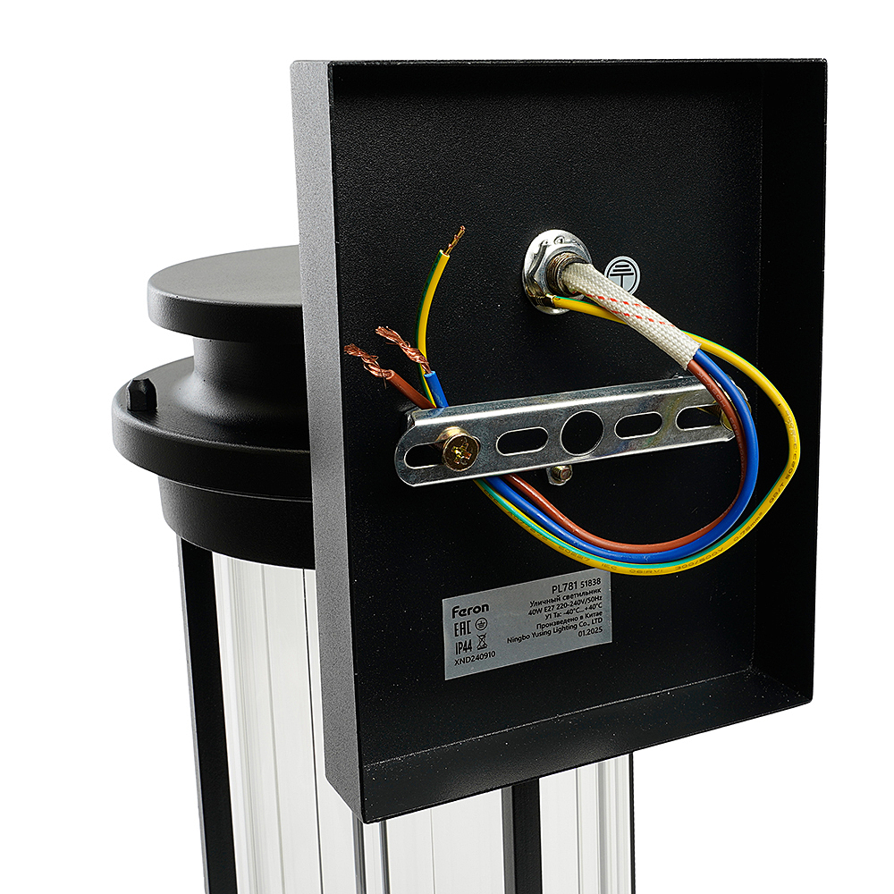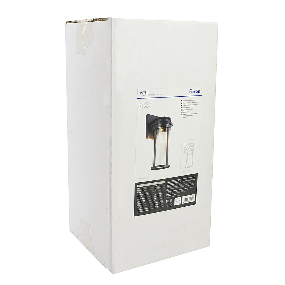 Светильник садово-парковый, серии ?Новара ?, (НБУ) FERON PL781 E27, 220-240V, IP44, цвет черный, цилиндр, на стену вниз, 190*170*300мм