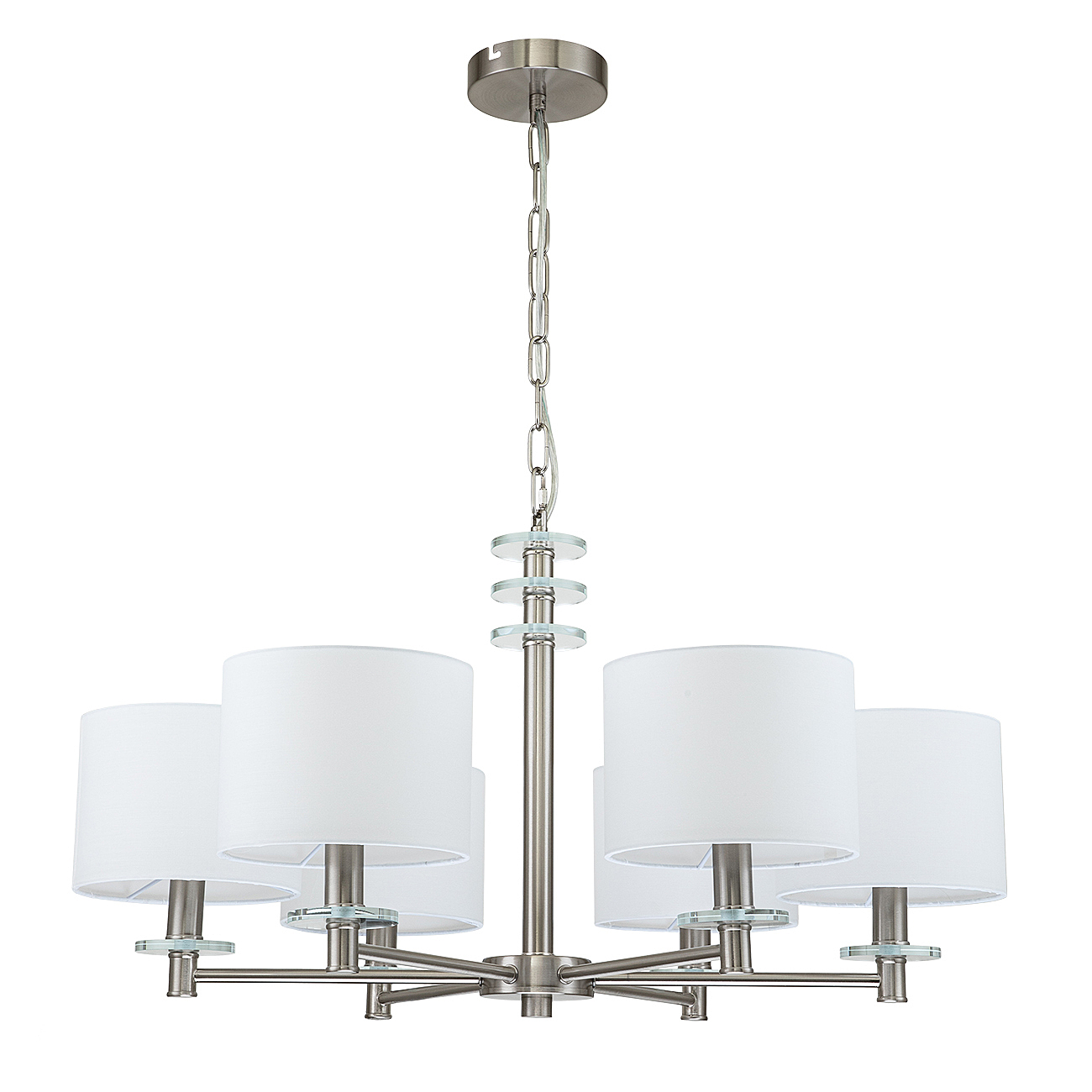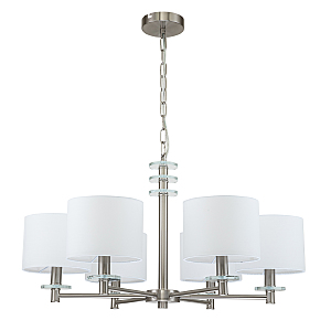 Допускается отличие страны-изготовителя, указанной в характеристиках. Линии производства могут находиться в нескольких государствах. Это не влияет на качество изготовления товара: все заводы данного бренда работают по общим стандартам, а готовые изделия проходят соответствующий контроль.Великобритания Коллекция Novella ЦветЦвет арматуры Никель Цвет Никель Материал арматуры Металл Цвет декора прозрачный Цвет плафона Белый Материал декора Стекло Материал плафона Ткань РазмерыВысота (мм) 1200 Длина (мм) 750 Ширина (мм) 750 Диаметр абажура-плафона 175 Высота абажура-плафона 138 ЭлектрикаКоличество ламп (шт) 6 Цоколь E14 Мощность лампы (Вт) 60 Напряжение (В) 220 Площадь освещения 22 Дополнительная информацияСпособ крепления Планка Степень защиты (IP) IP20 Вес (Кг) 3,8 Тип подвеса На цепи -