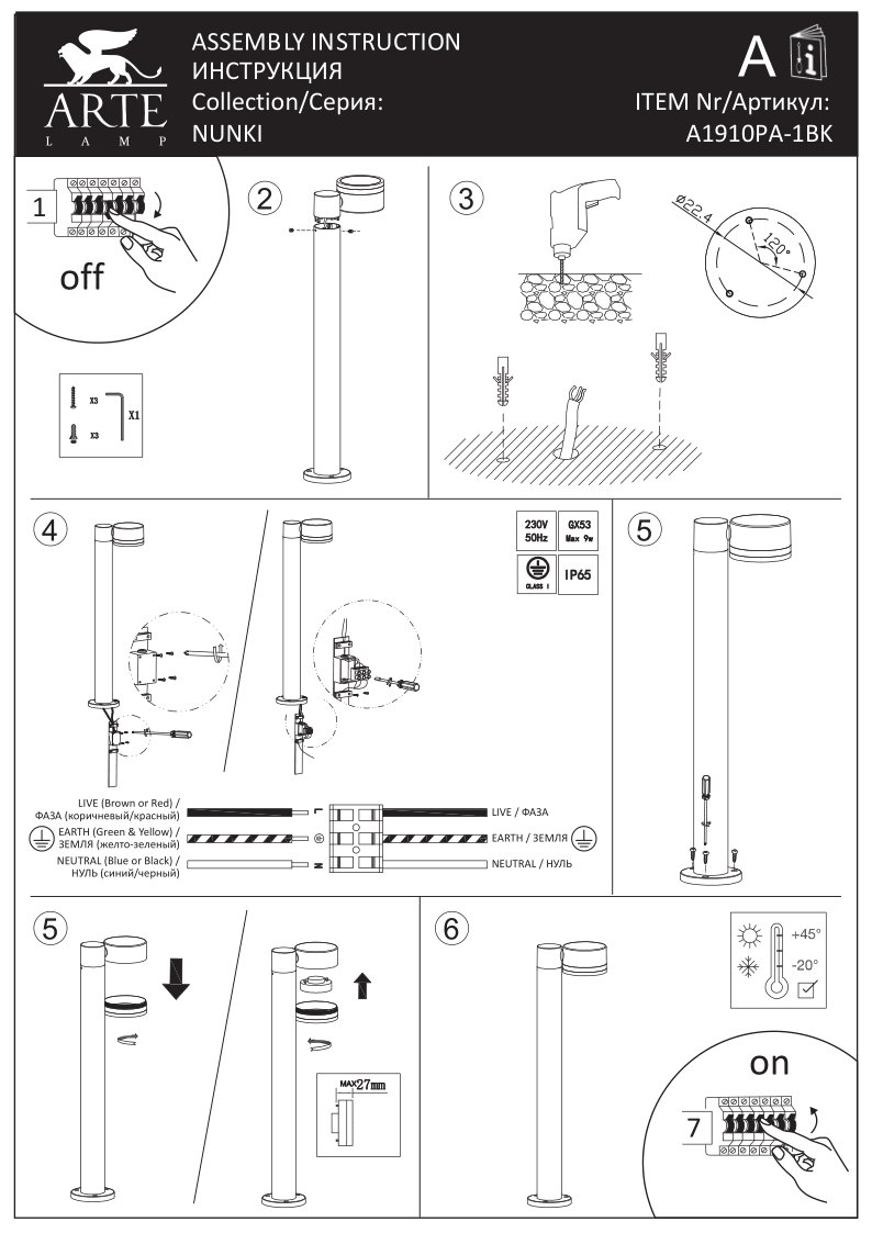 Производитель Arte Lamp Артикул A1910PA-1BK Страна