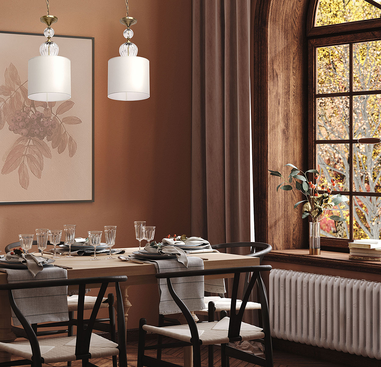 Модный дизайн в американском стиле придает актуальности интерьеру.Полная семья решает задачи общего и зонального освещения.Ручное изготовление стеклянных элементов добавляет эксклюзивности светильнику.Массивные стеклянные элементы гармонируют с широкими плафонами и добавляют статусности модели.Трендовый цвет бронзы корпуса и универсальный белый цвет абажура создают эффектный образ.Заменяемые источники света и двойное крепление удобны в эксплуатации.