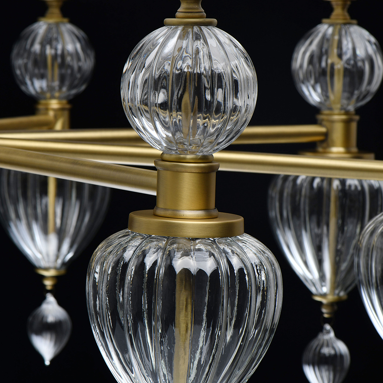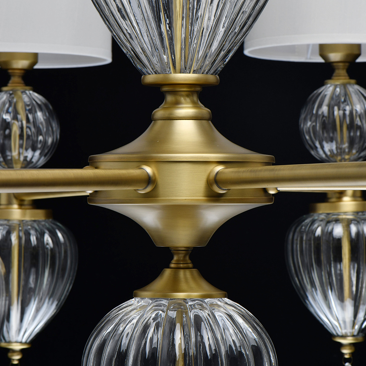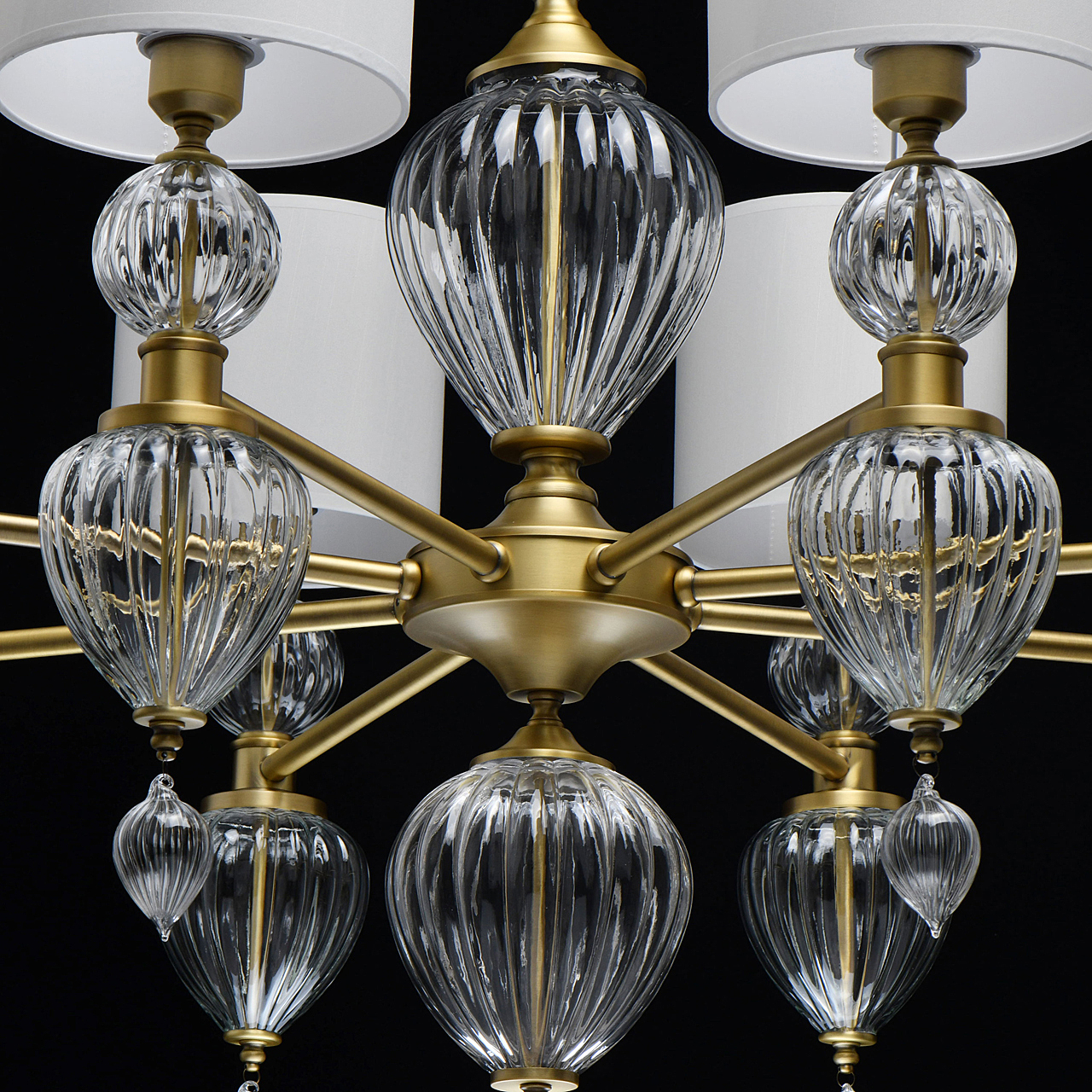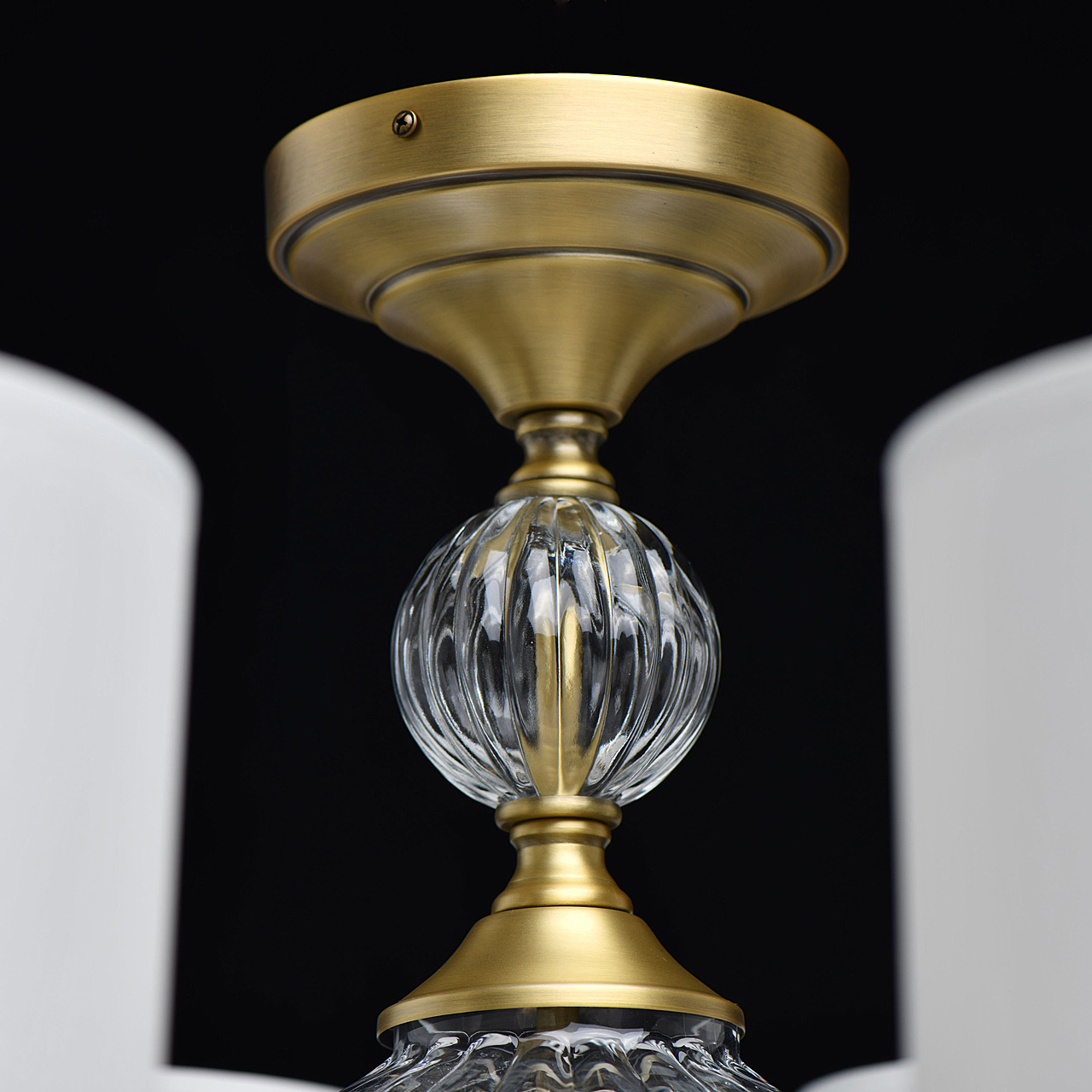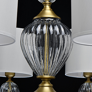 Модный дизайн в американском стиле придает актуальности интерьеру.Полная семья решает задачи общего и зонального освещения.Ручное изготовление стеклянных элементов добавляет эксклюзивности светильнику.Массивные стеклянные элементы гармонируют с широкими плафонами и добавляют статусности модели.Трендовый цвет бронзы корпуса и универсальный белый цвет абажура создают эффектный образ.Заменяемые источники света и двойное крепление удобны в эксплуатации.
