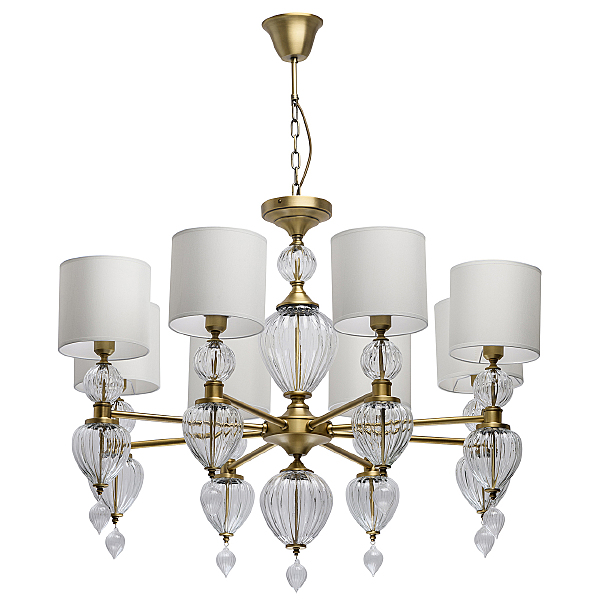 Допускается отличие страны-изготовителя, указанной в характеристиках. Линии производства могут находиться в нескольких государствах. Это не влияет на качество изготовления товара: все заводы данного бренда работают по общим стандартам, а готовые изделия проходят соответствующий контроль.Германия Коллекция Оделия ЦветЦвет арматуры Латунь Цвет Латунь Материал арматуры Металл Цвет плафона Белый Материал декора Стекло Материал плафона Текстиль РазмерыВысота (мм) 3120 Диаметр (мм) 1120 Высота минимальная (мм) 880 Ширина (мм) 1120 ЭлектрикаКоличество ламп (шт) 8 Цоколь E27 Лампочки в комплекте Нет в комплекте Мощность лампы (Вт) 40 Напряжение (В) 220 Площадь освещения 16 Дополнительная информацияСпособ крепления Планка, Крюк Степень защиты (IP) IP20 Вес (Кг) 19.16 Тип подвеса На цепи -