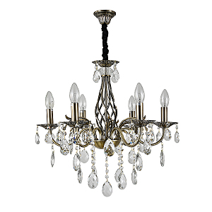 Люстра подвесная 6x40Вт E14, металл/хрусталь, античная бронза/прозрачный