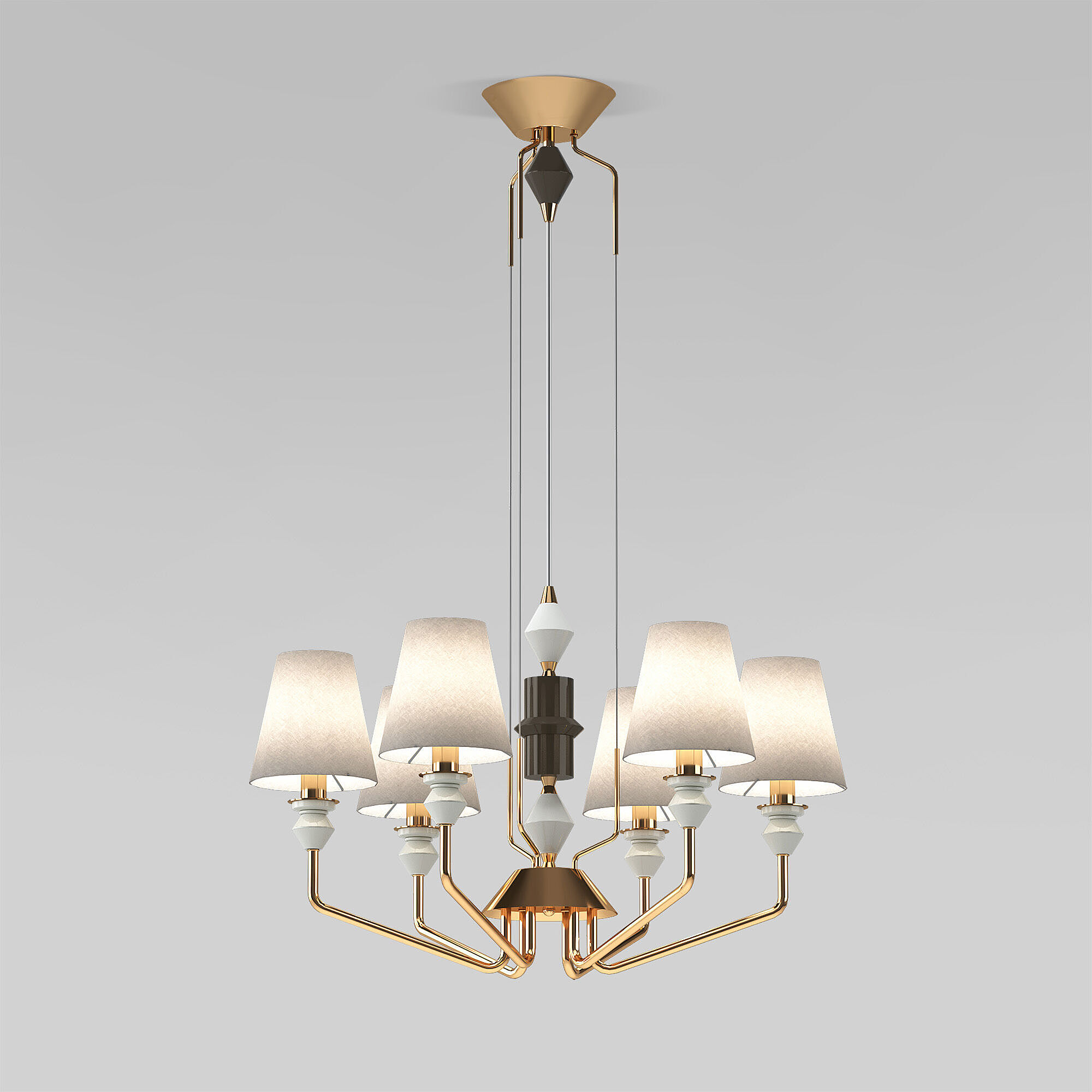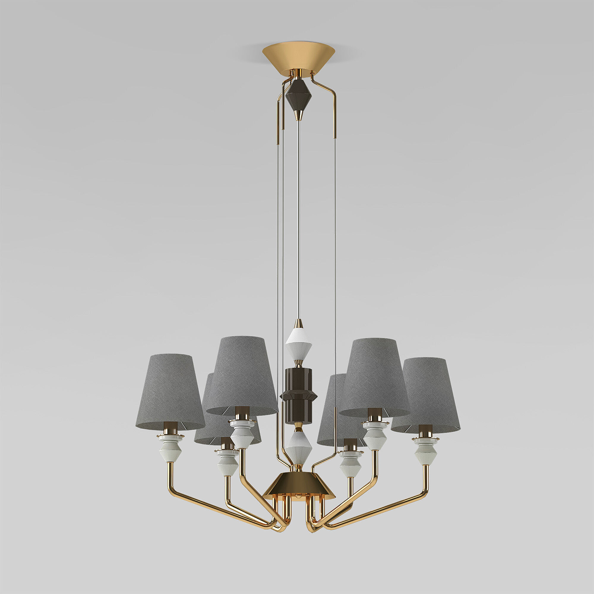 Допускается отличие страны-изготовителя, указанной в характеристиках. Линии производства могут находиться в нескольких государствах. Это не влияет на качество изготовления товара: все заводы данного бренда работают по общим стандартам, а готовые изделия проходят соответствующий контроль.Китай Коллекция Olaria ЦветЦвет арматуры Латунь Цвет Латунь Материал арматуры Металл Цвет плафона Серый Материал декора Керамика Материал плафона Ткань РазмерыВысота (мм) 1260 Длина (мм) 700 Высота минимальная (мм) 660 Ширина (мм) 700 Диаметр основания 160 ЭлектрикаКоличество ламп (шт) 6 Цоколь E14 Лампочки в комплекте Нет в комплекте Мощность лампы (Вт) 40 Напряжение (В) 220 Площадь освещения 20 Дополнительная информацияСпособ крепления Планка Степень защиты (IP) IP20 Тип подвеса На тросах Тип управления Управление смартфоном, WI-Fi, Голосовое управление -