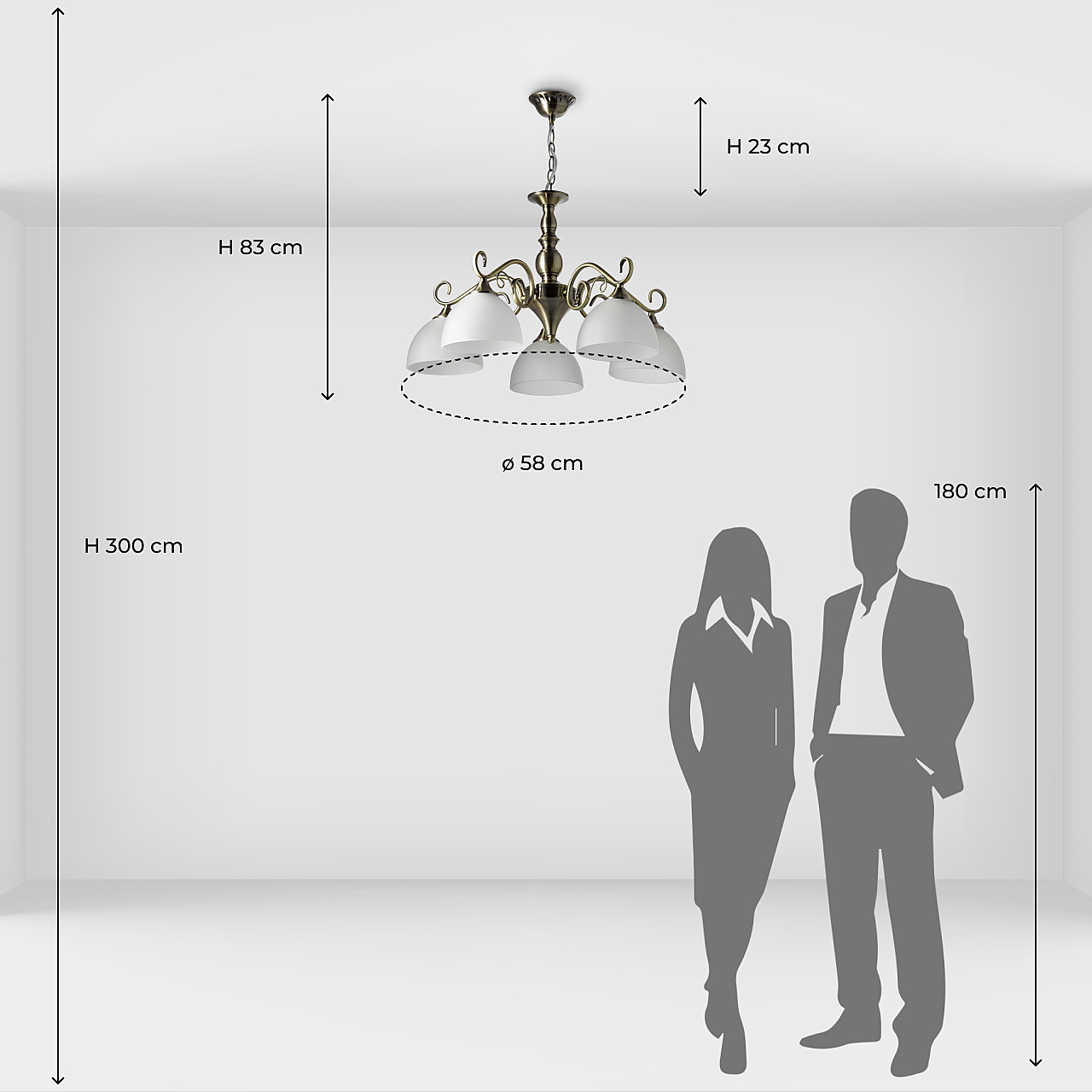 Допускается отличие страны-изготовителя, указанной в характеристиках. Линии производства могут находиться в нескольких государствах. Это не влияет на качество изготовления товара: все заводы данного бренда работают по общим стандартам, а готовые изделия проходят соответствующий контроль.Германия Коллекция Олимп ЦветЦвет арматуры Античная бронза Цвет Бронза Материал арматуры Металл Цвет плафона матовый Материал плафона Стекло РазмерыВысота (мм) 600 Диаметр (мм) 560 Высота минимальная (мм) 390 Ширина (мм) 560 ЭлектрикаКоличество ламп (шт) 5 Цоколь E27 Мощность лампы (Вт) 60 Общая мощность (Вт) 300 Напряжение (В) 220 Световой поток 3225 Площадь освещения 15 Дополнительная информацияСпособ крепления Крюк Степень защиты (IP) IP20 Вес (Кг) 3.1 Тип подвеса На цепи -