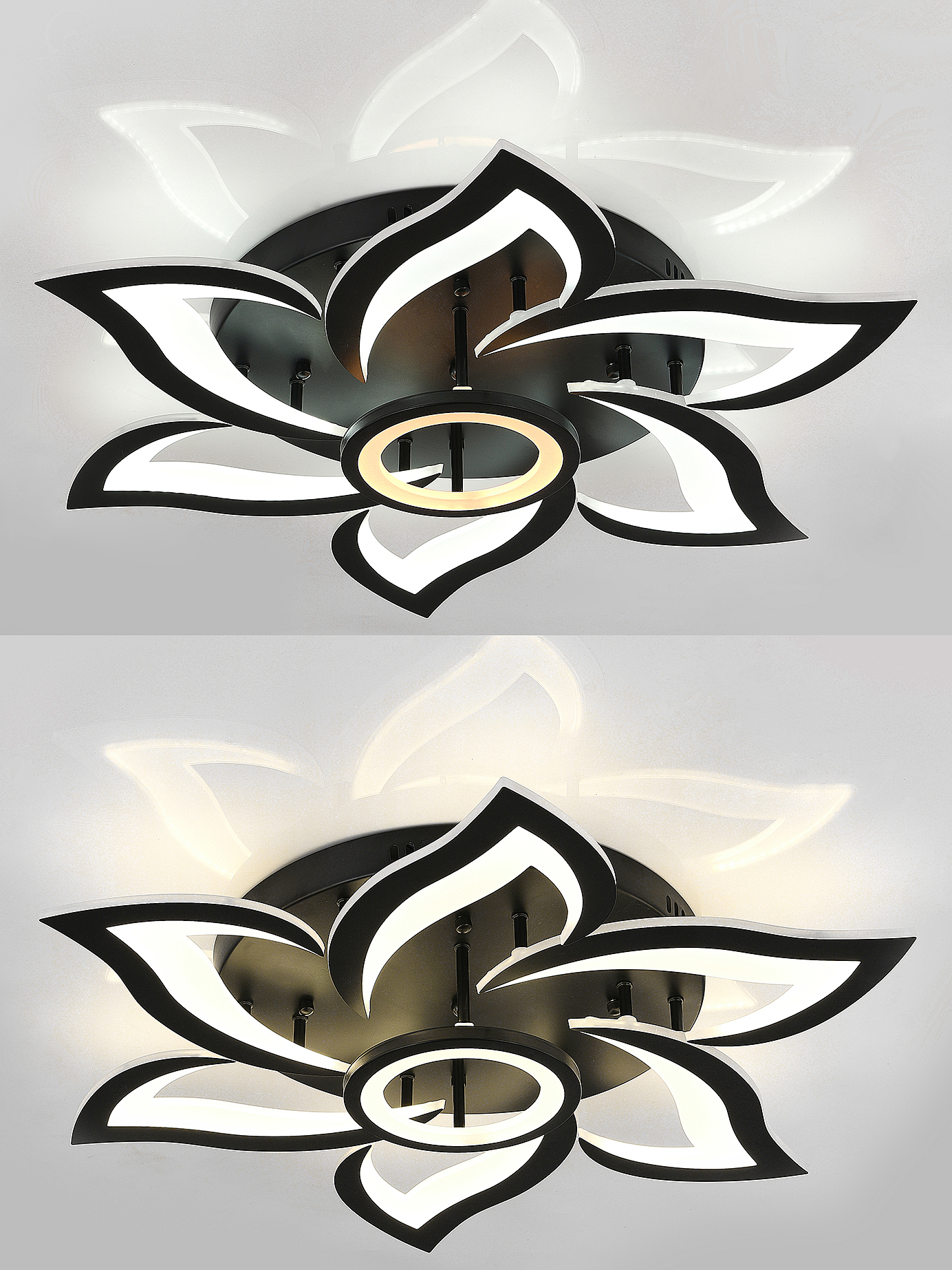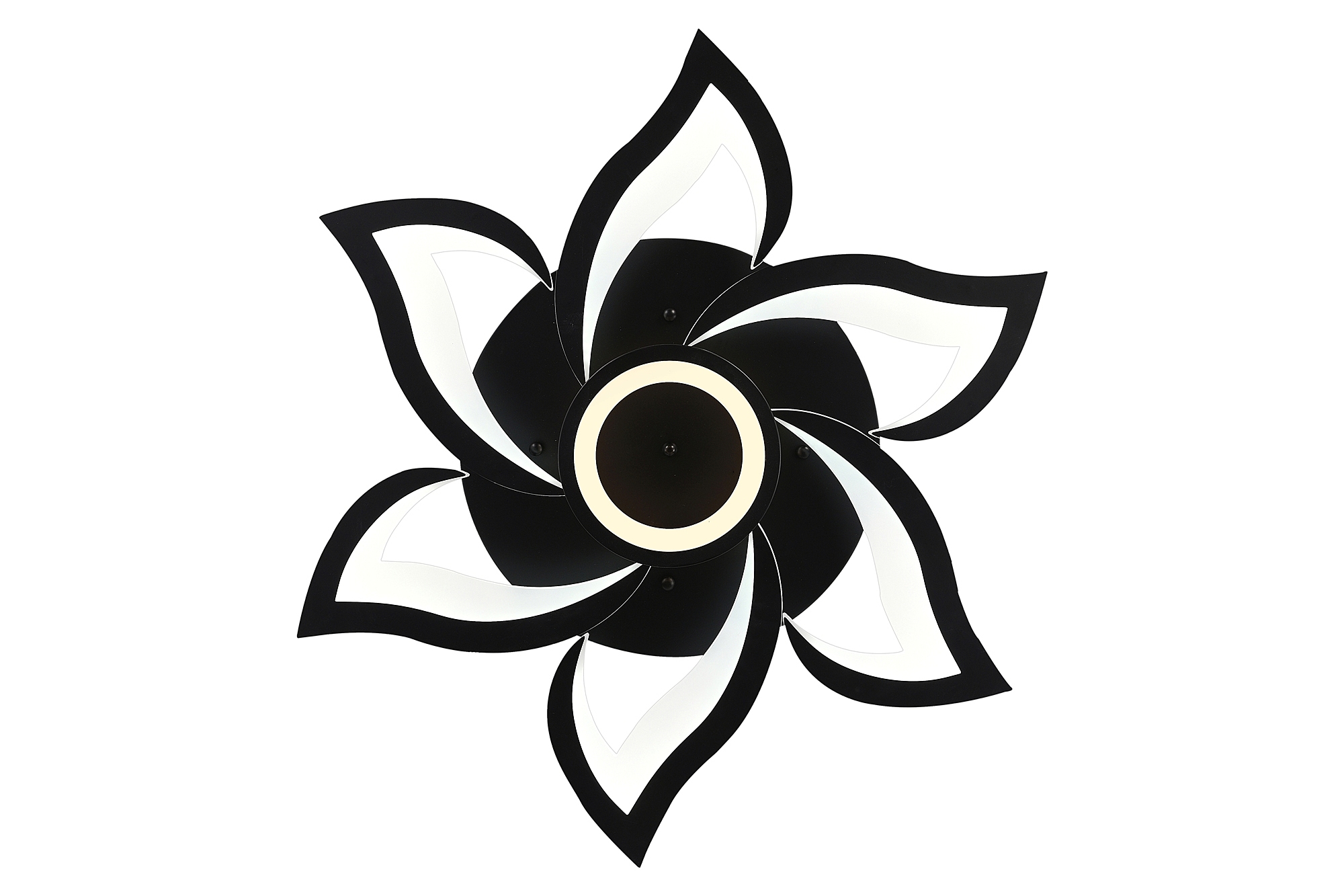Светодиодный светильник с дистанционным управлением через пульт ДУ, смартфон, планшет. Лицевую часть составляют равноудалённые друг от друга рожки с симметричным дизайнерским узором. В центральной части расположен нимб, который дополняет дизайн. Используется высококачественный акрил, который обеспечивает отличное рассеивание света. Данная модель, выполненная в чёрном цвете, отлично украсит любой интерьер. Люстра имеет тёплый, естественный и холодный свет с регулировкой температуры свечения. Обладает плавной настройкой яркости в диапазоне от 10% до 100%. Имеется режим ночника и таймер отключения. Кроме того, от стандартного выключателя люстра имеет 4 режима свечения. Данные функции делают светильник оптимальным в процессе использования. Общая мощность 120W со световым потоком 9600 lm позволяет осветить до 23 кв.м. Он прост в сборке, установке и экономичен в обслуживании. Светодиоды легко заменимы в случае перегорания. Люстра подойдёт для всех видов потолков. Цветовая температура настраивается от 3000 до 6500 K. Степень защиты 20 IP.