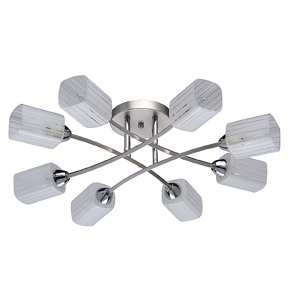 Допускается отличие страны-изготовителя, указанной в характеристиках. Линии производства могут находиться в нескольких государствах. Это не влияет на качество изготовления товара: все заводы данного бренда работают по общим стандартам, а готовые изделия проходят соответствующий контроль.Германия Коллекция Олимпия ЦветЦвет арматуры Хром Цвет Хром Материал арматуры Металл Материал плафона Стекло РазмерыВысота (мм) 180 Диаметр (мм) 700 Ширина (мм) 700 ЭлектрикаКоличество ламп (шт) 8 Цоколь E14 Мощность лампы (Вт) 60W Напряжение (В) 220 Дополнительная информацияСтепень защиты (IP) IP20 Вес (Кг) 2.7 -