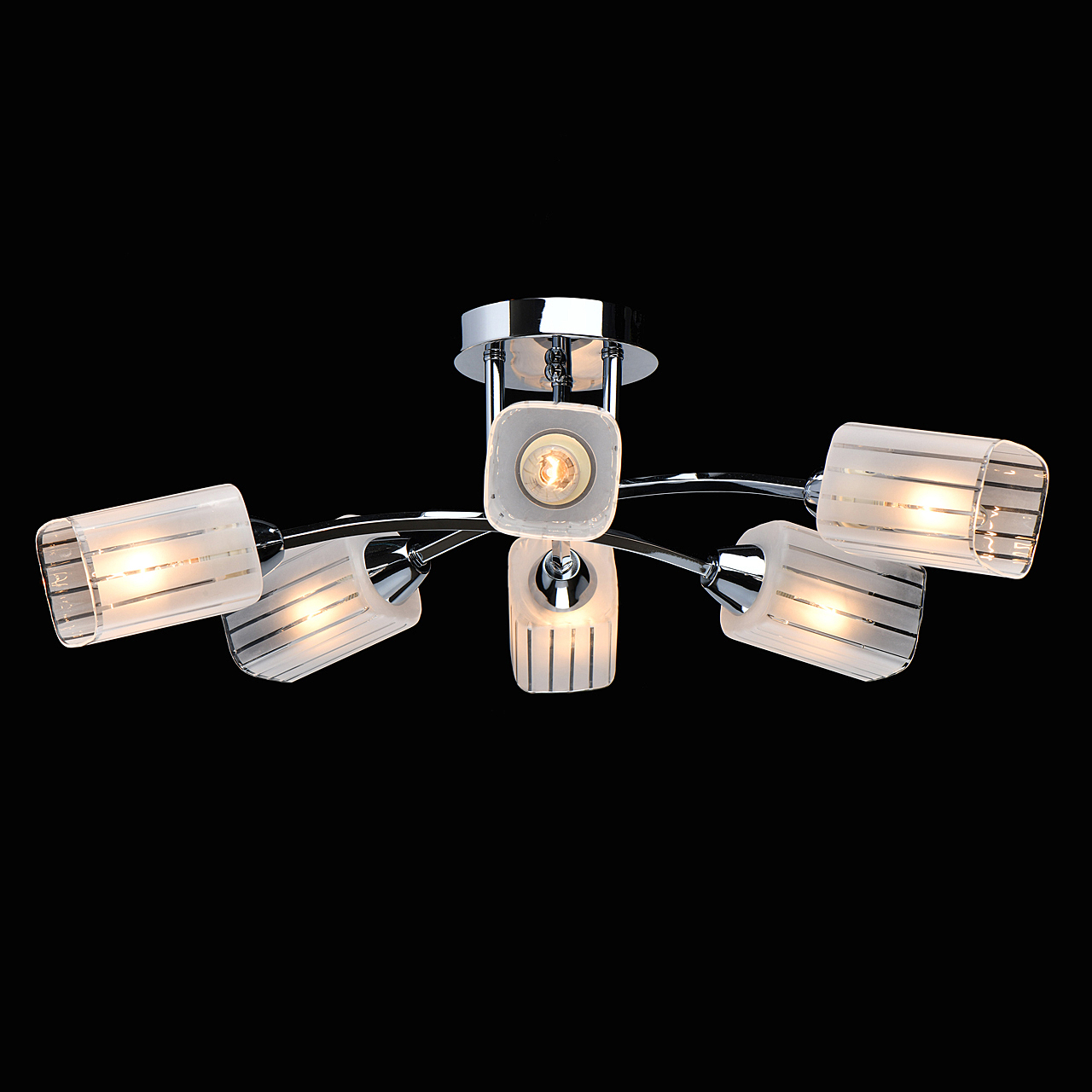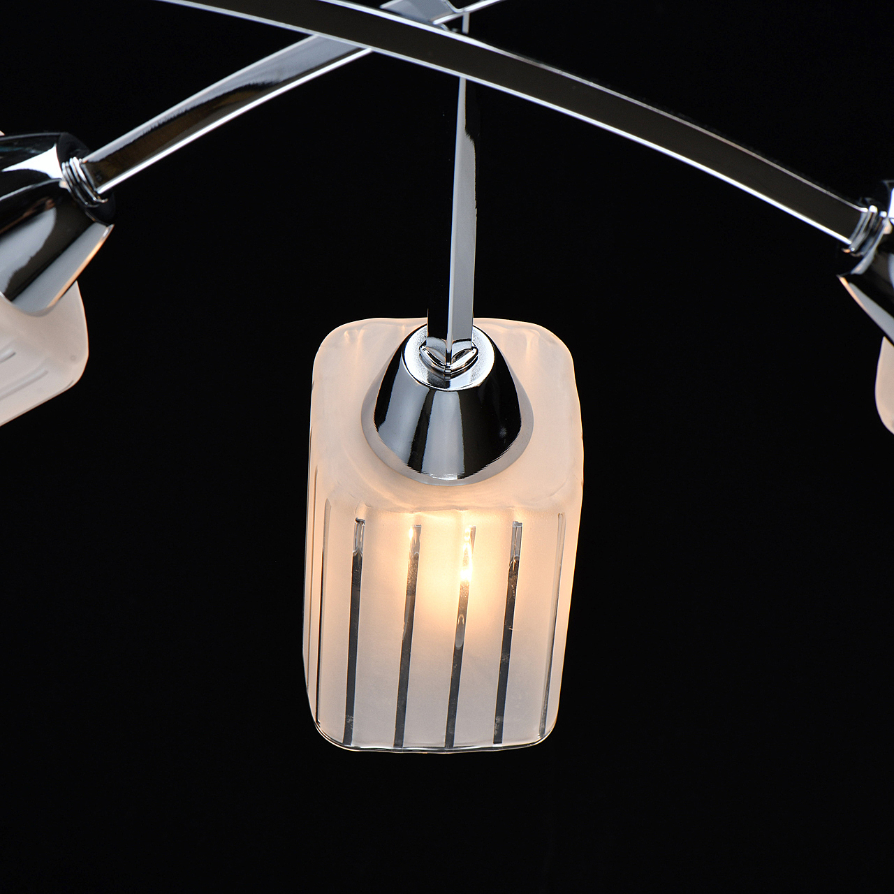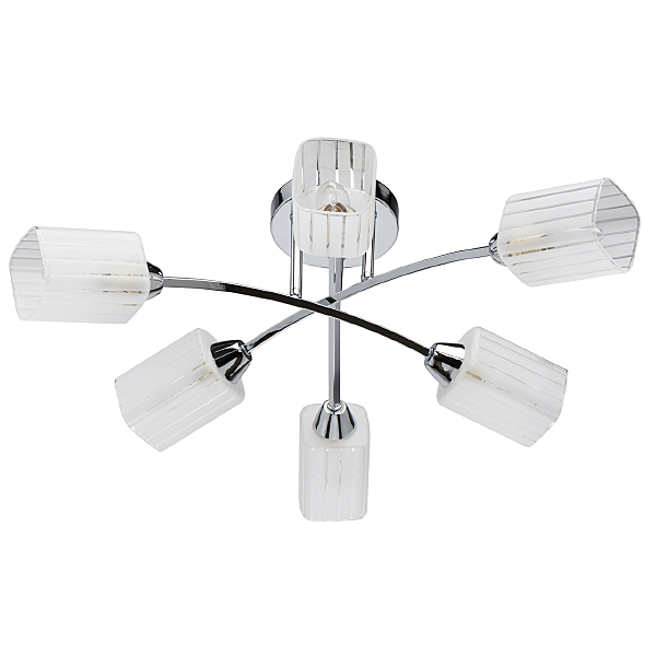 Популярный цвет хрома основания универсальное решение для интерьеров различной стилистики. Компактная высота идеальна для стандартной высоты потолка.Квадратные плафоны матового стекла с орнаментом обеспечивают мягкое освещениеЗаменяемые источники света удобны в эксплуатации.