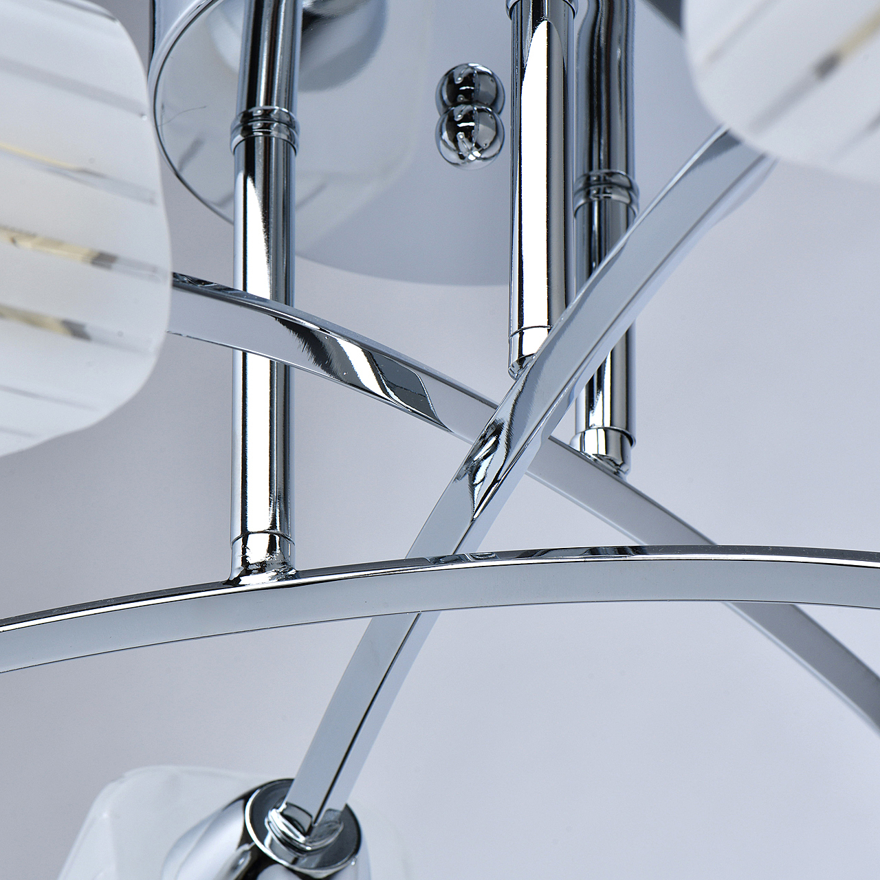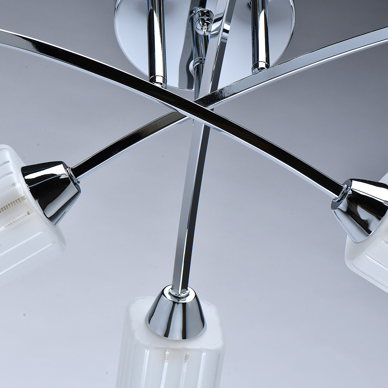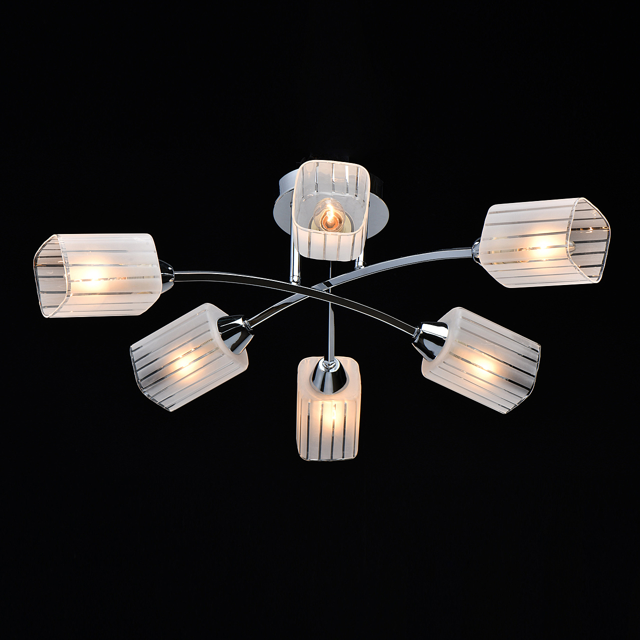 Популярный цвет хрома основания универсальное решение для интерьеров различной стилистики. Компактная высота идеальна для стандартной высоты потолка.Квадратные плафоны матового стекла с орнаментом обеспечивают мягкое освещениеЗаменяемые источники света удобны в эксплуатации.