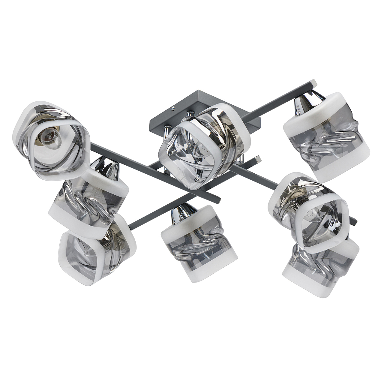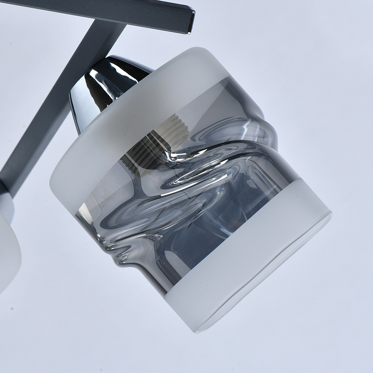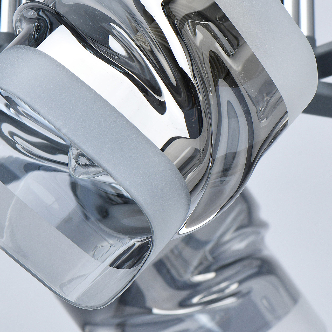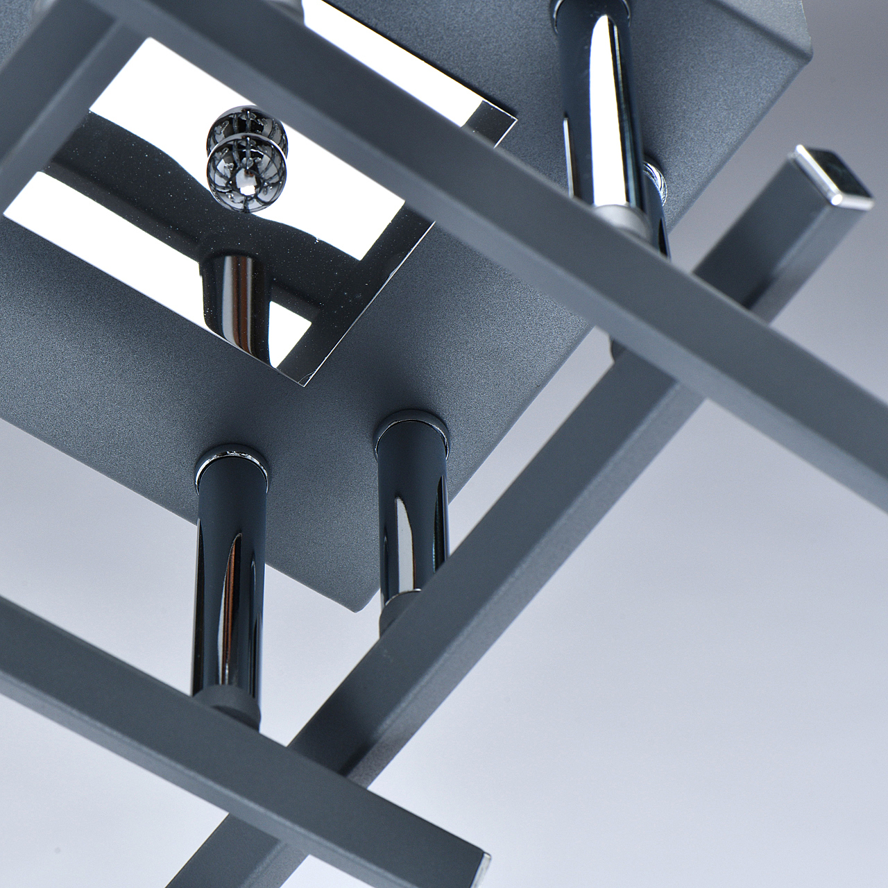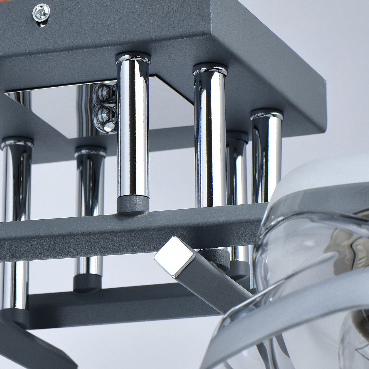 Компактная высота модели идеальна для стандартной высоты потолка.Комбинация фактур металла хрома и матового серого в тренде.Плафоны гальванизированы в тон основания, частично матированы, обеспечивают мягкий, комфортный свет.Фиксированное положение плафонов создает хорошее распределение света.Заменяемые источники света удобны в эксплуатации.