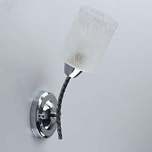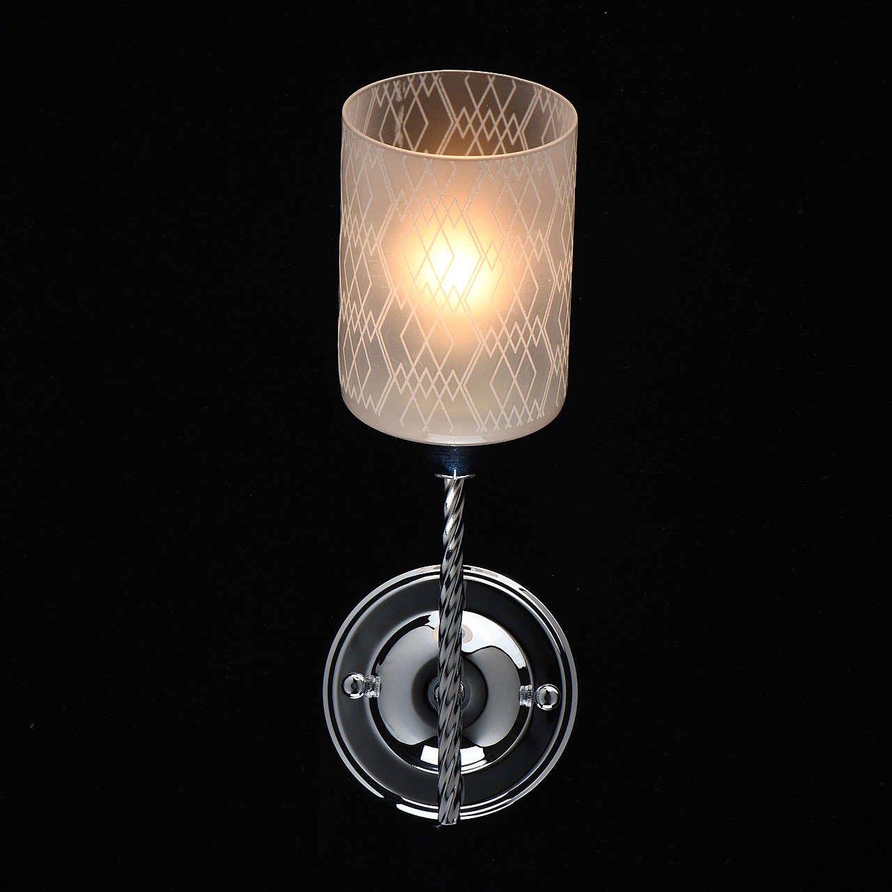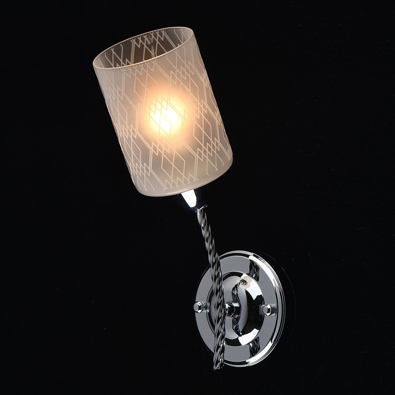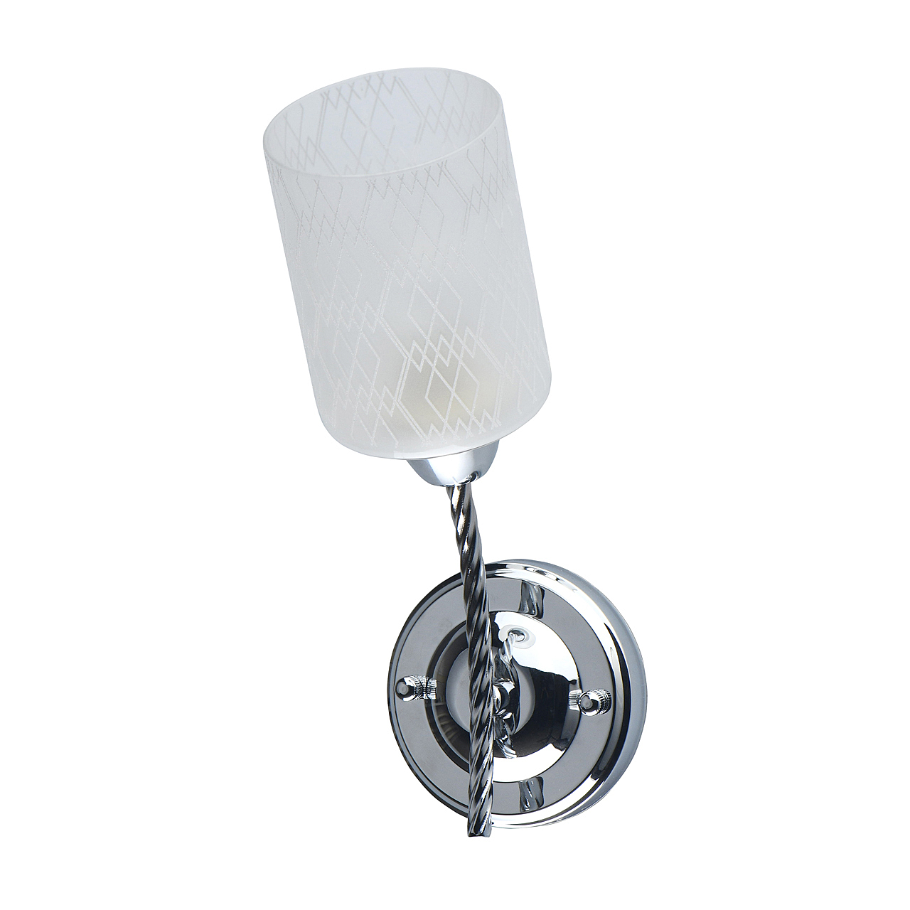 Плафон матового белого стекла с орнаментом обеспечивает мягкое освещениеВитой рожок светильника сочетается с фактурным плафоном.Полная семья из бра и потолочного светильника.