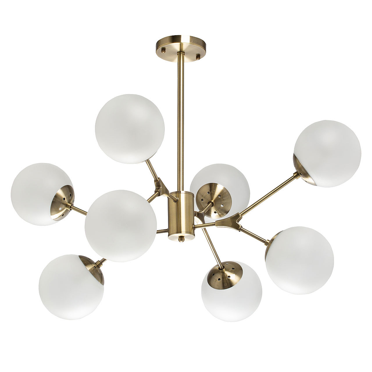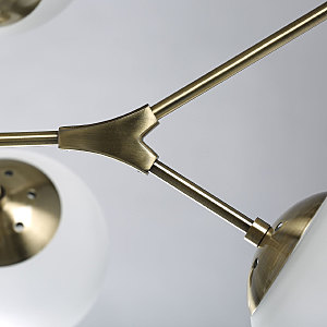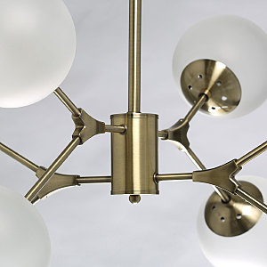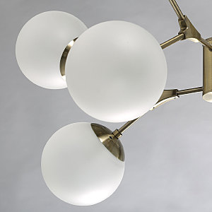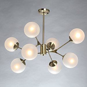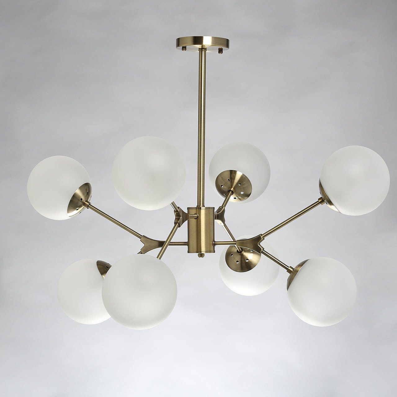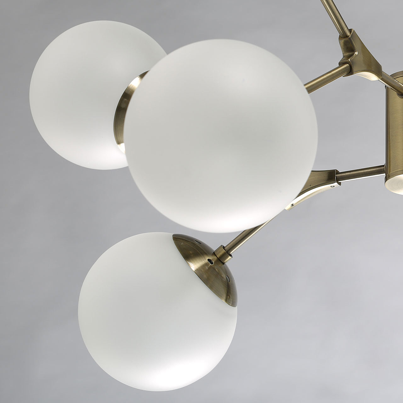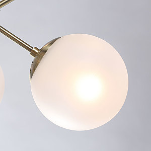 Металлическое основание светильника гальванизировано в цвет античной бронзы. Светильник декорирован стеклянными плафонами, обработанными матированием.