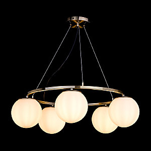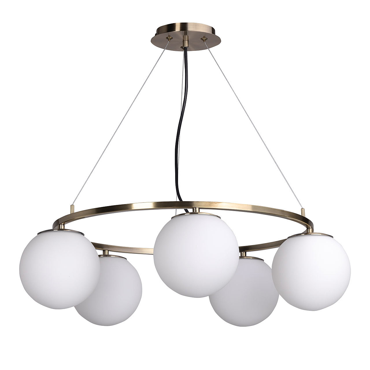 Подвесной светильник в современном дизайне хорошо подойдет в гостиную, спальню, кухню.Модный цвет античной бронзы сохраняет свою актуальность.Декор из стеклянных плафонов белого цвета обеспечивает комфортное освещение.Подвесы в виде тросов позволяют устанавливать комфортную высоту. Заменяемые источники света удобны в эксплуатации.