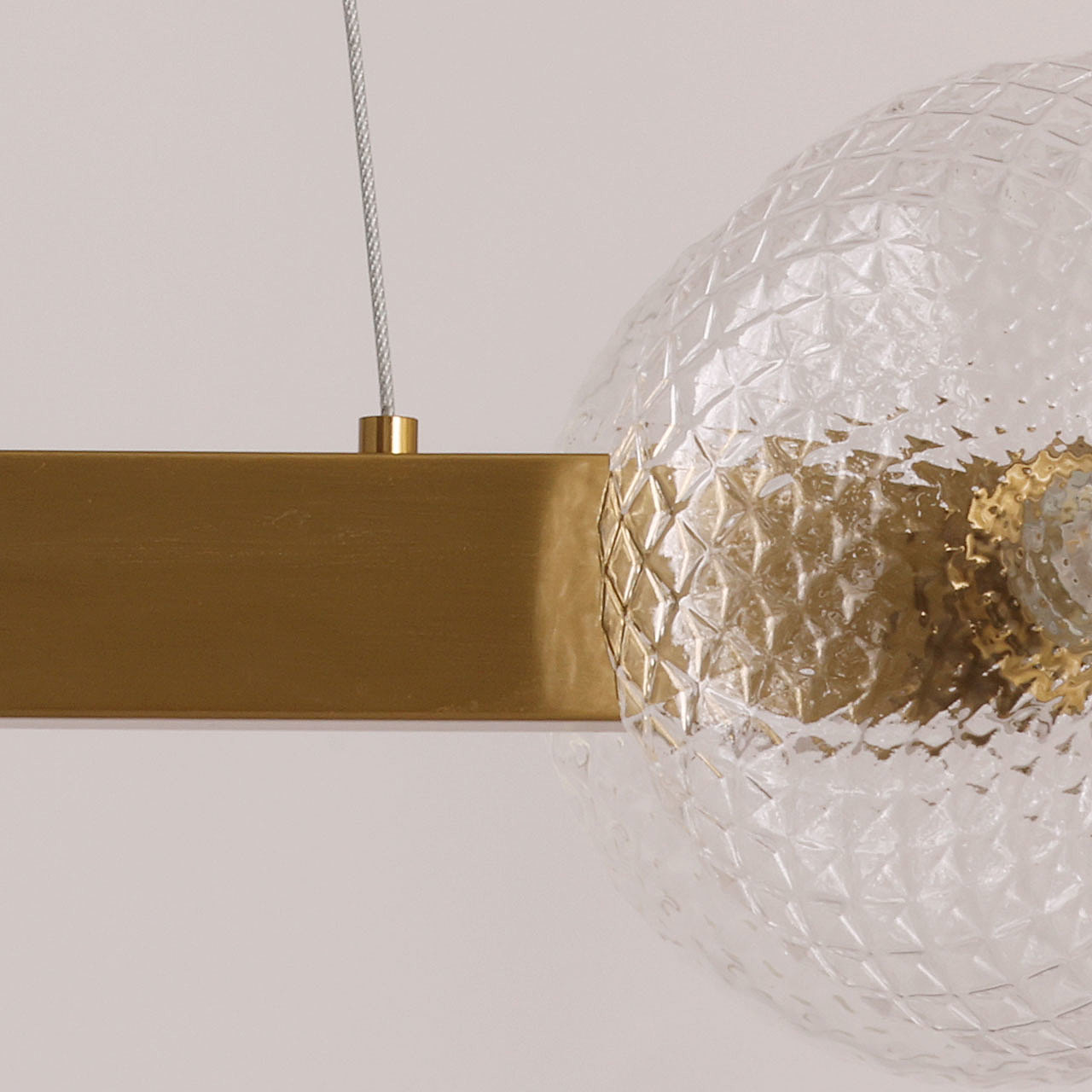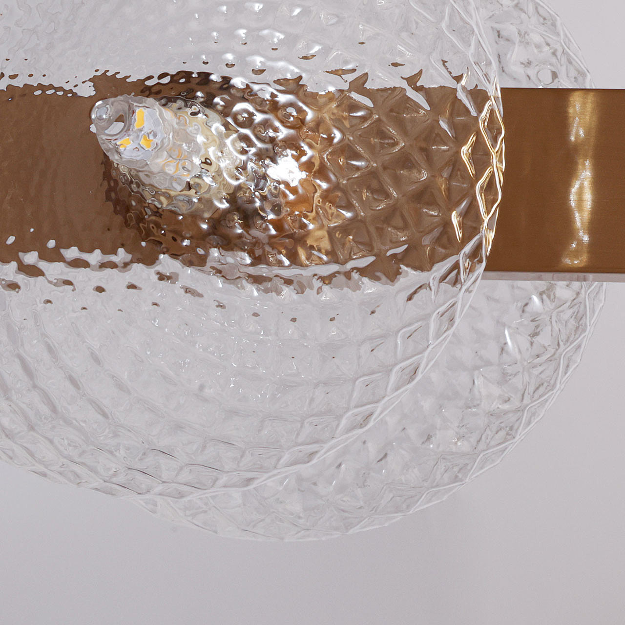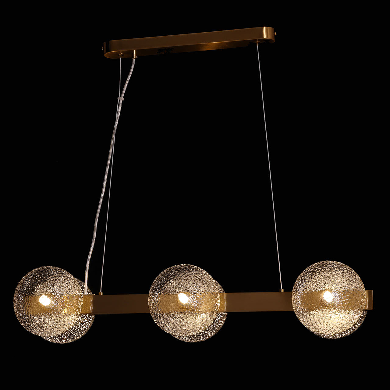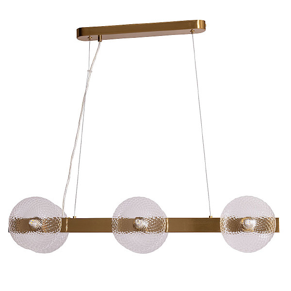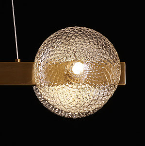 Оригинальные полусферы декора придают подвесной люстре элегантности. Фактурное стекло эффектно преломляет свет. Гальваника в цвет латуни сохраняет свою актуальность. Заменяемый источник света удобен в эксплуатации. Возможность регулировать комфортную высоту.