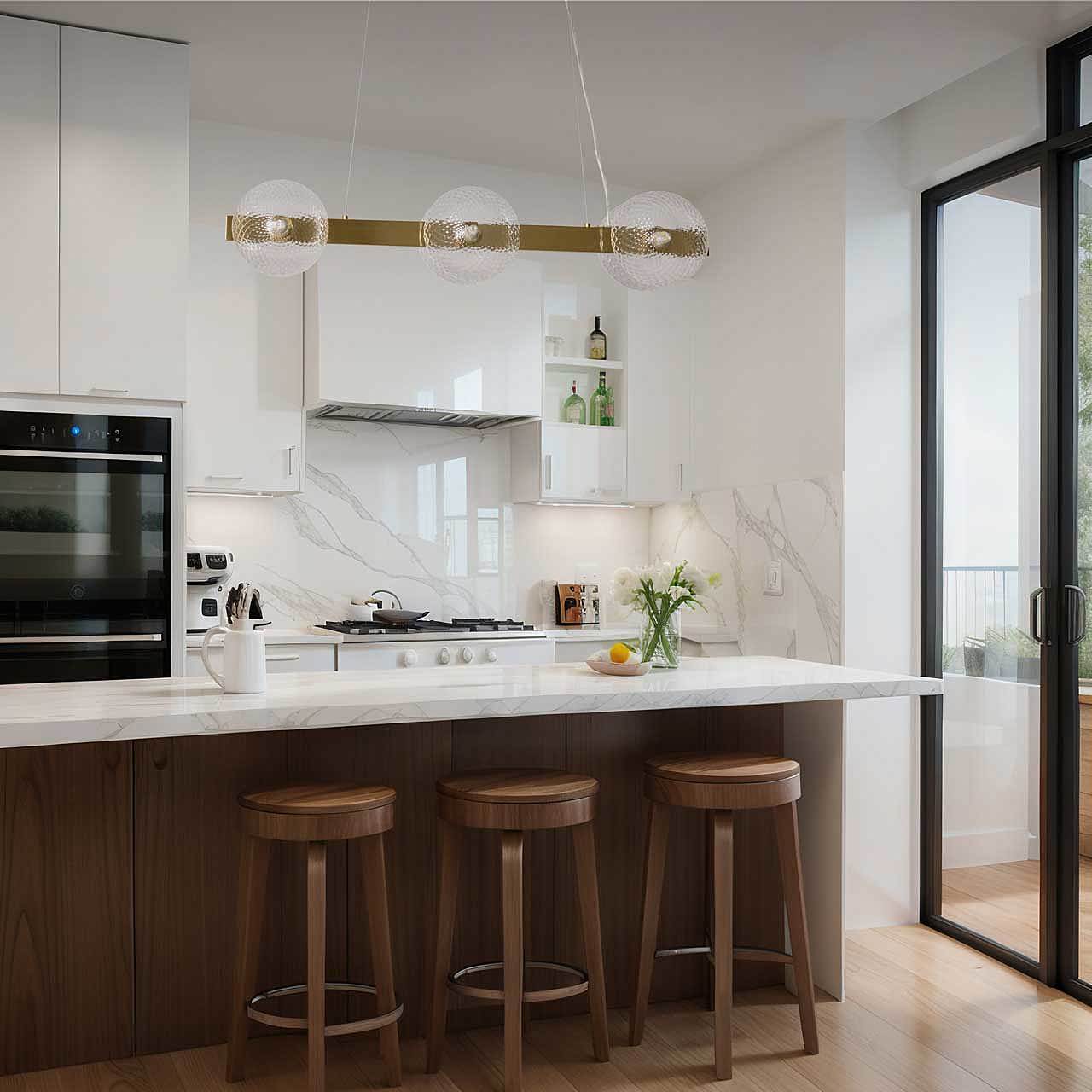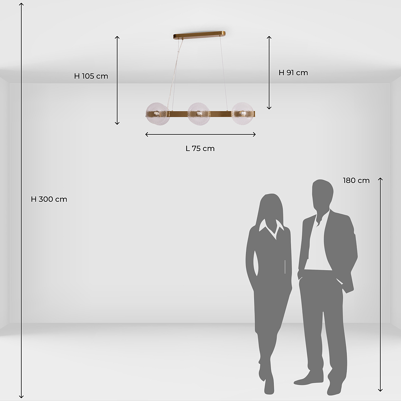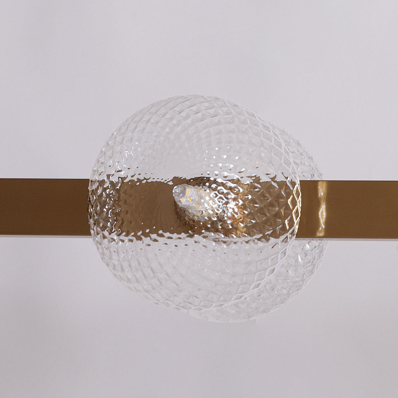 Оригинальные полусферы декора придают подвесной люстре элегантности. Фактурное стекло эффектно преломляет свет. Гальваника в цвет латуни сохраняет свою актуальность. Заменяемый источник света удобен в эксплуатации. Возможность регулировать комфортную высоту.