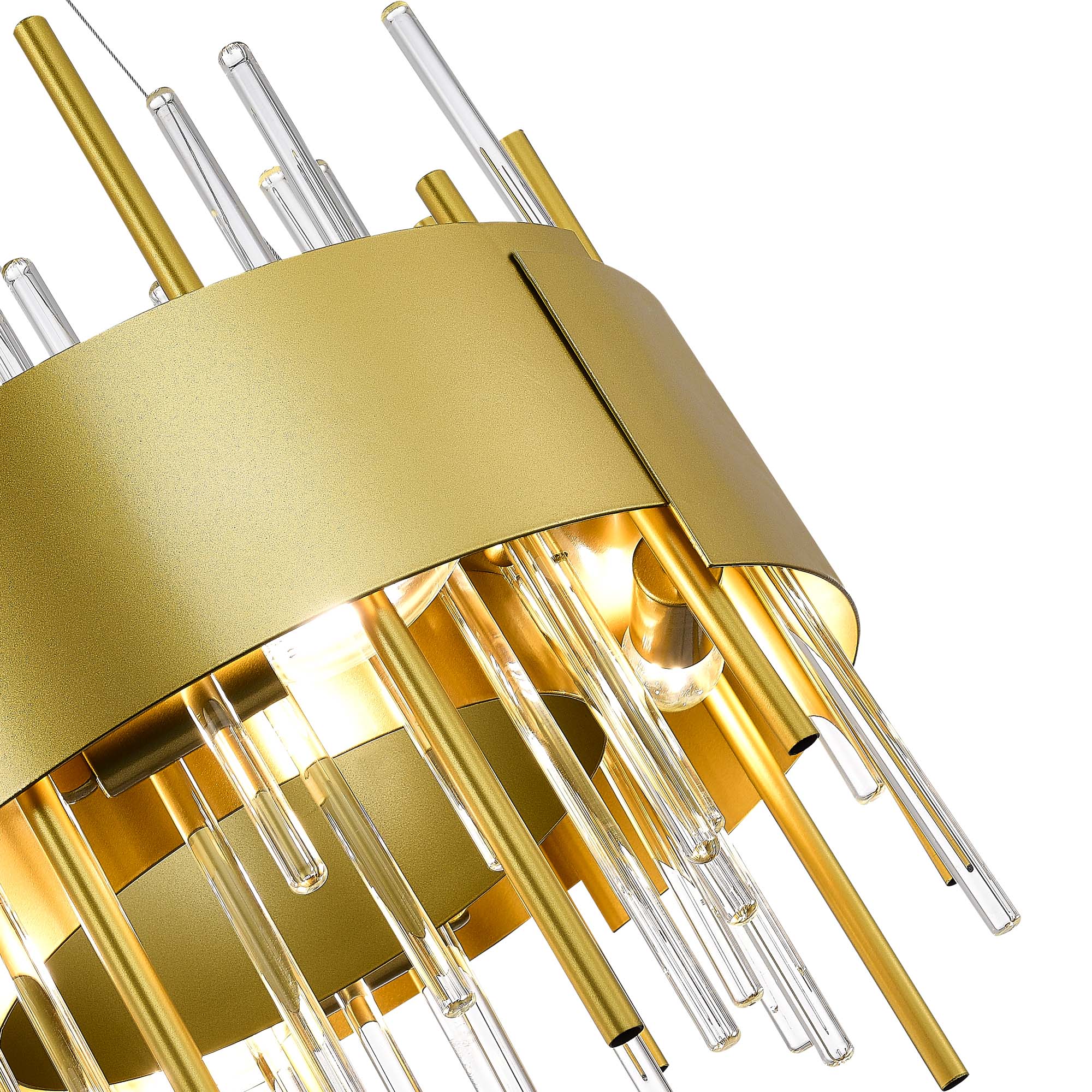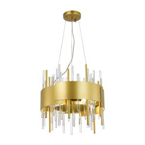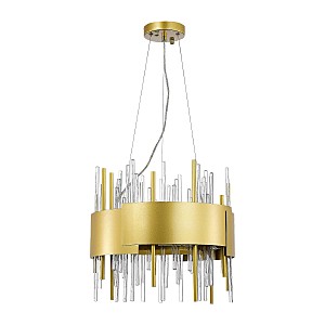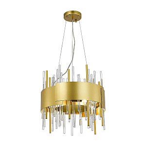 Металл и стекло полноправно взаимодействуют в дизайне коллекции OLVERA. Трубочки из хрустального стекла и металла опоясаны лентой, состоящей из нескольких элементов. Крепление на тросы делает конструкцию визуально более легкой, а дополнительное кольцо помогает сбалансировать конструкцию при подвешивании. Широкий размерный ряд позволяет использовать светильники в разных помещениях и для разных целей.