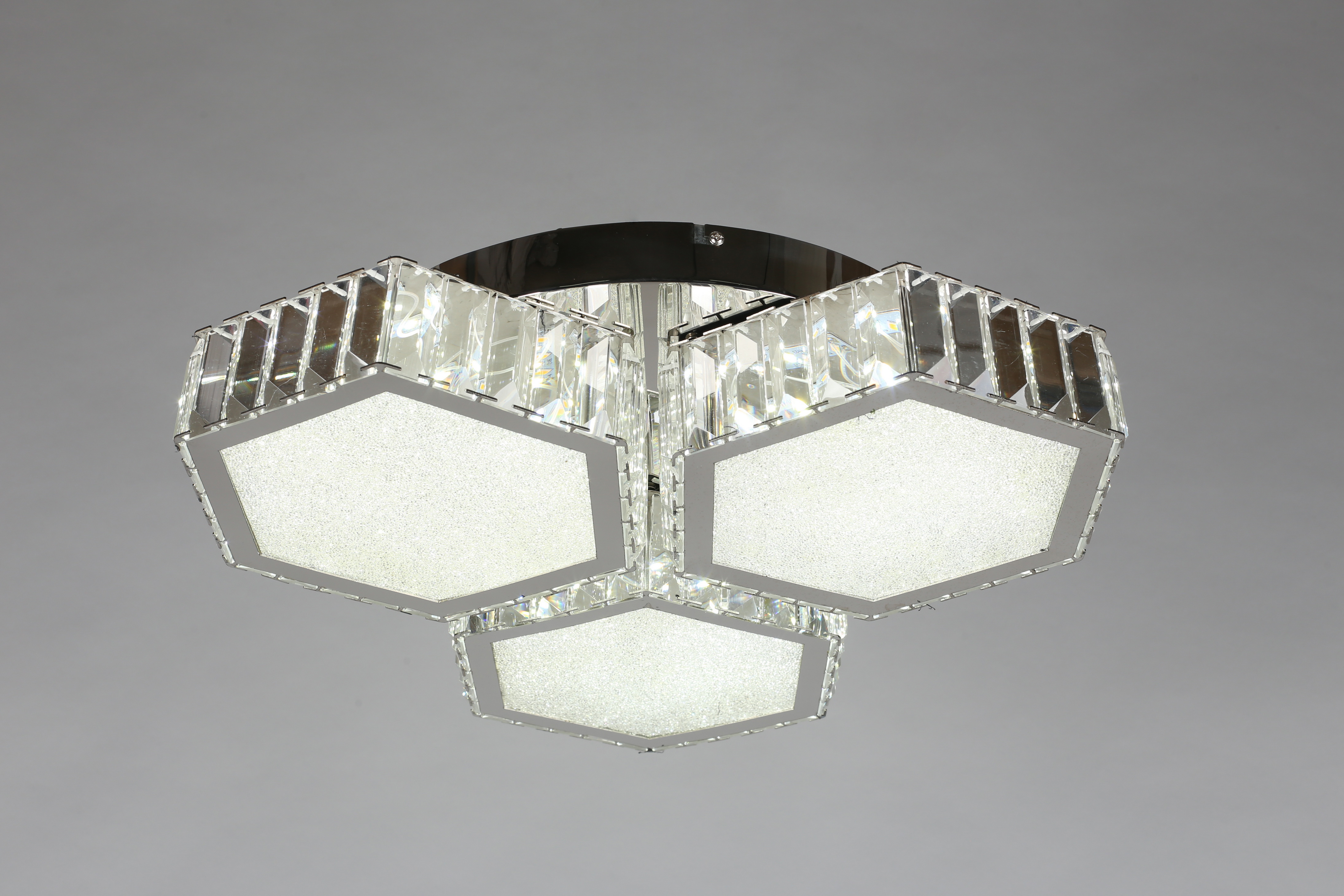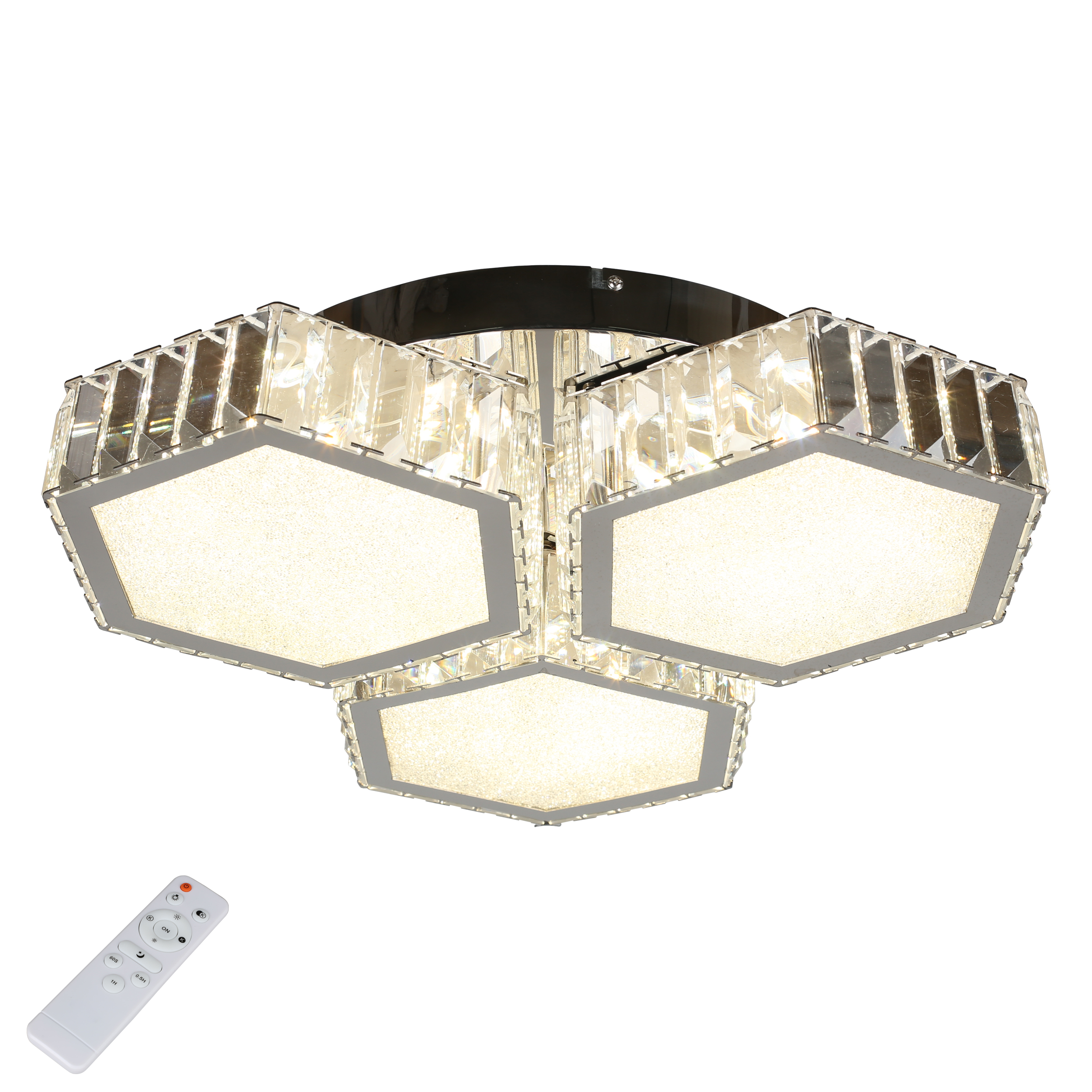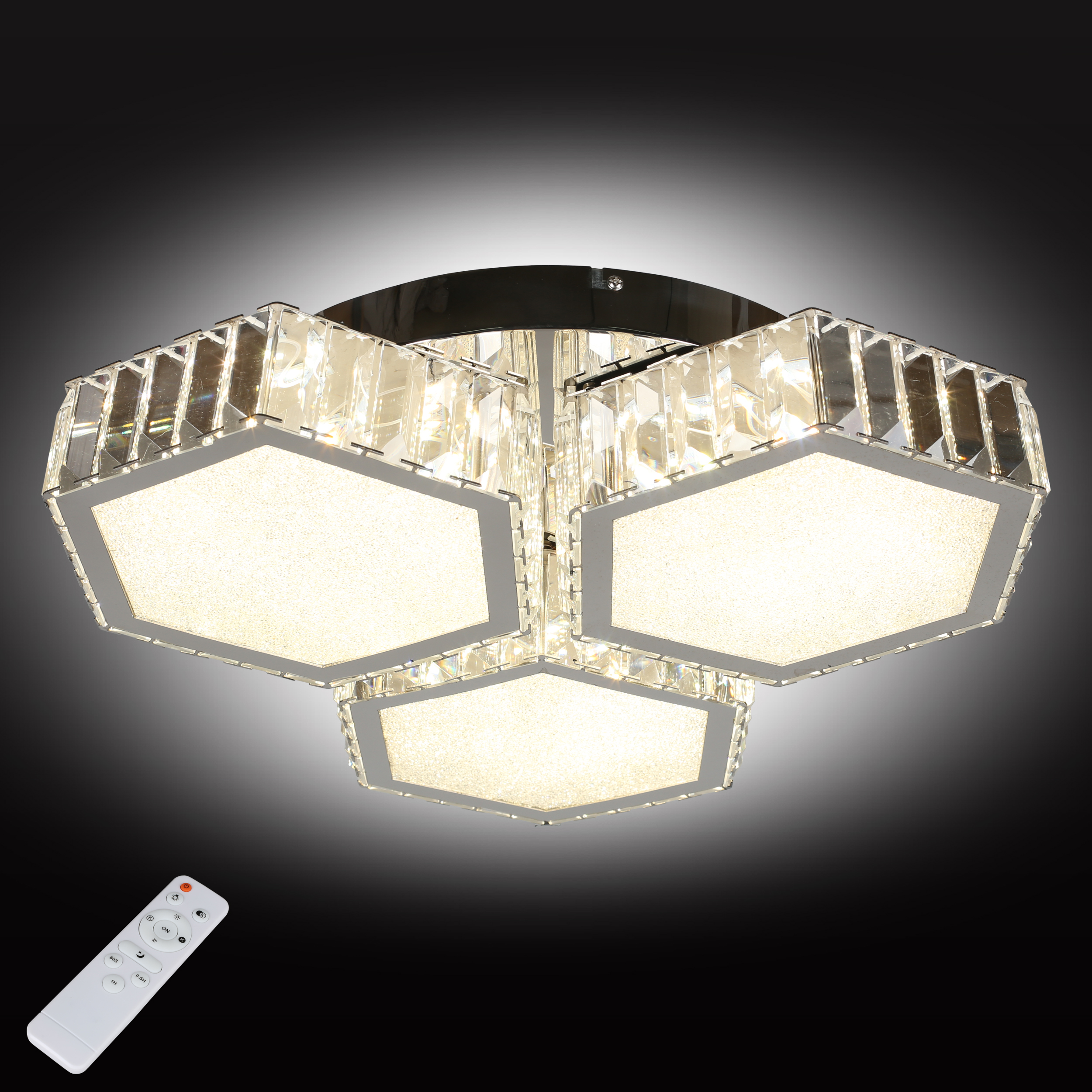 Допускается отличие страны-изготовителя, указанной в характеристиках. Линии производства могут находиться в нескольких государствах. Это не влияет на качество изготовления товара: все заводы данного бренда работают по общим стандартам, а готовые изделия проходят соответствующий контроль.Китай ЦветЦвет арматуры Хром Цвет Хром Материал арматуры Металл Цвет декора прозрачный Цвет плафона бесцветный Материал декора Хрусталь Материал плафона Пластик РазмерыВысота (мм) 120 Диаметр (мм) 525 Ширина (мм) 525 ЭлектрикаКоличество ламп (шт) 1 Цоколь LED Мощность лампы (Вт) 72 Дополнительная информацияСпособ крепления Планка Техническая оссобеность Ночной режим, Таймер, Регулировка яркости, Полностью светодиодная, Регулировка цветовой температуры Тип управления Пульт ДУ -