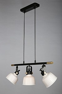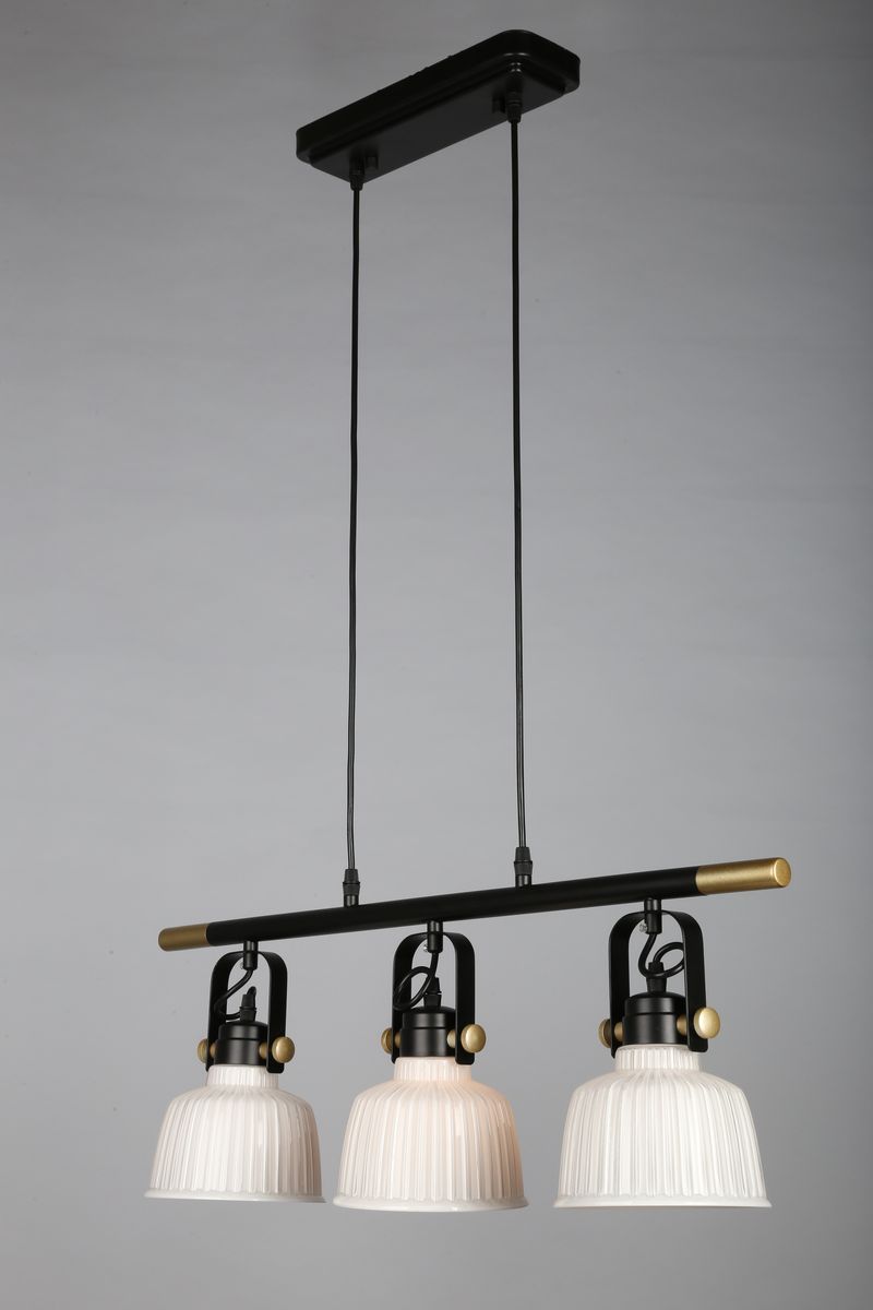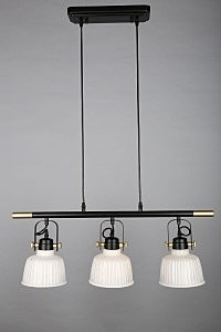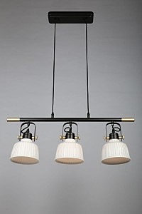 Допускается отличие страны-изготовителя, указанной в характеристиках. Линии производства могут находиться в нескольких государствах. Это не влияет на качество изготовления товара: все заводы данного бренда работают по общим стандартам, а готовые изделия проходят соответствующий контроль.Китай Коллекция Zamora ЦветЦвет арматуры Золото, Черный Цвет Черный Материал арматуры Металл Цвет плафона Белый Материал плафона Стекло РазмерыВысота (мм) 1200 Длина (мм) 160 Высота минимальная (мм) 320 Ширина (мм) 680 ЭлектрикаКоличество ламп (шт) 3 Цоколь E14 Мощность лампы (Вт) 40W Напряжение (В) 220 Дополнительная информацияВес (Кг) 6 Тип подвеса На тросах -
