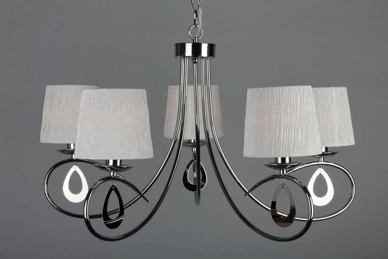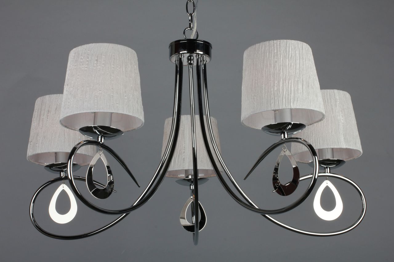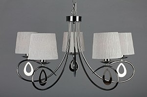 Допускается отличие страны-изготовителя, указанной в характеристиках. Линии производства могут находиться в нескольких государствах. Это не влияет на качество изготовления товара: все заводы данного бренда работают по общим стандартам, а готовые изделия проходят соответствующий контроль.Китай Коллекция Udine ЦветЦвет арматуры Хром Цвет Хром Материал арматуры Металл Цвет плафона Белый Материал плафона Ткань РазмерыВысота (мм) 1200 Диаметр (мм) 750 Высота минимальная (мм) 600 Ширина (мм) 750 Возможность регулировки высоты Есть ЭлектрикаКоличество ламп (шт) 5 Цоколь E14 Тип лампы Светодиодная, Накаливания, Энергосберегающая (КЛЛ) Лампочки в комплекте Нет в комплекте Возможность подключение диммера Есть Мощность лампы (Вт) 40W Общая мощность (Вт) 200 Напряжение (В) 220 Дополнительная информацияСтепень защиты (IP) IP20 Вес (Кг) 3,0 Тип подвеса На цепи -