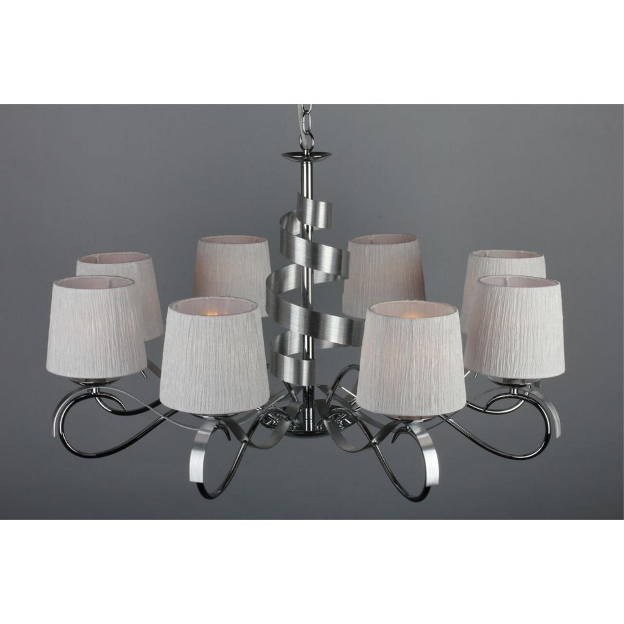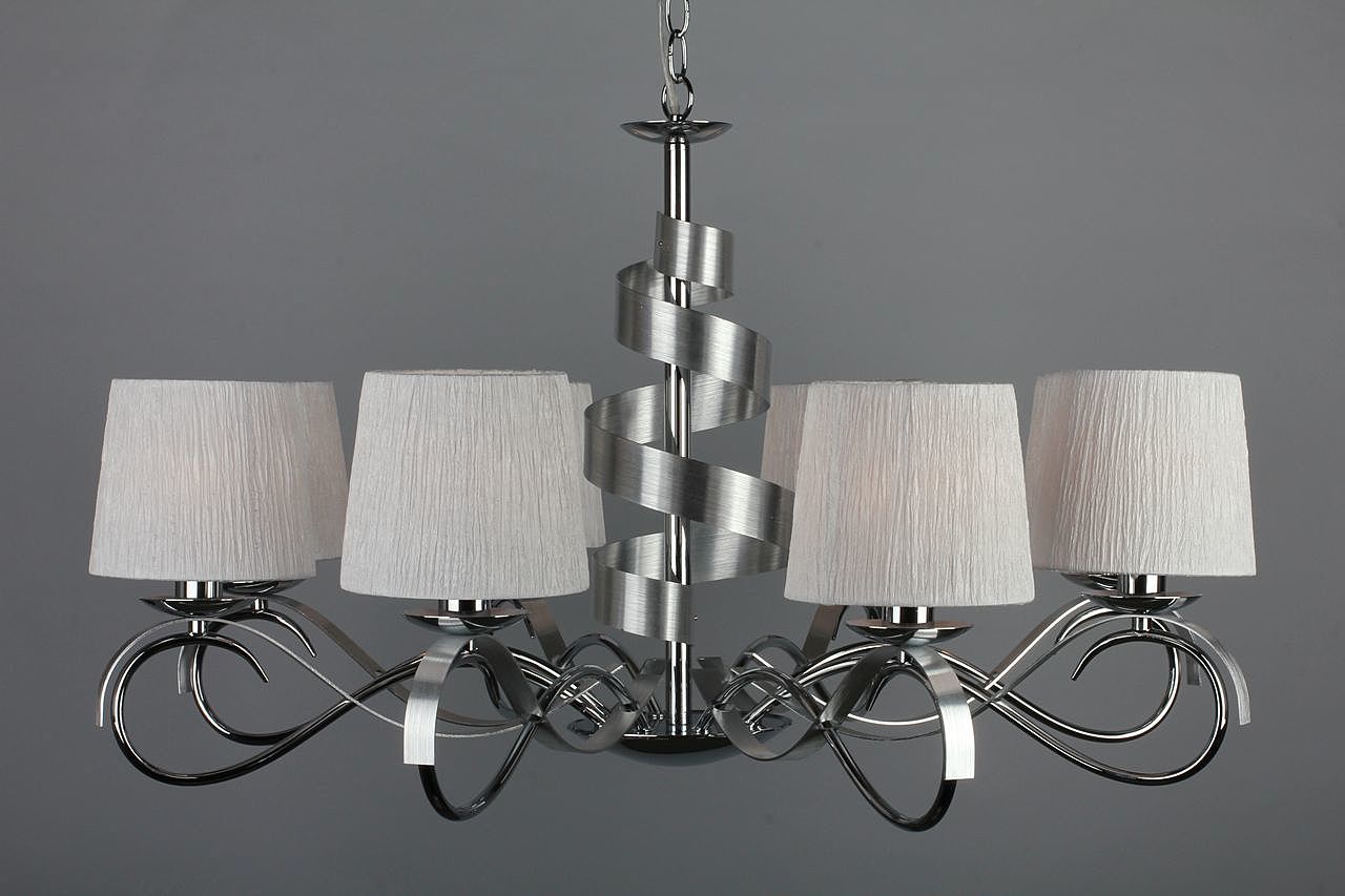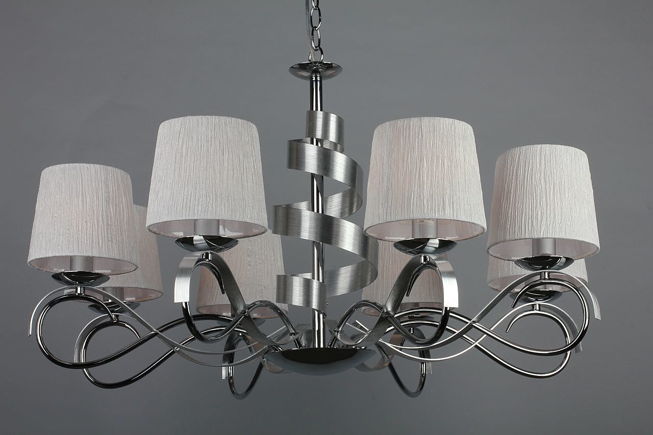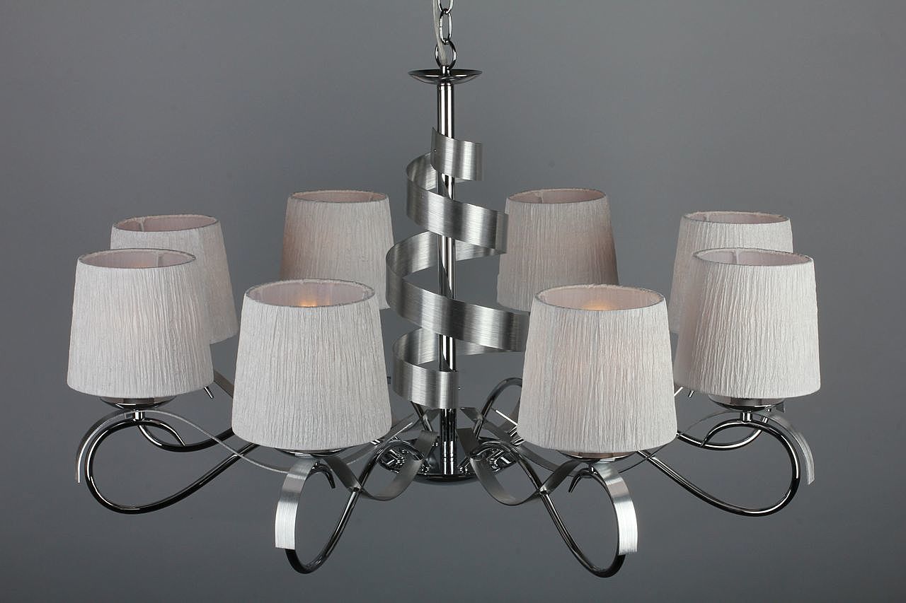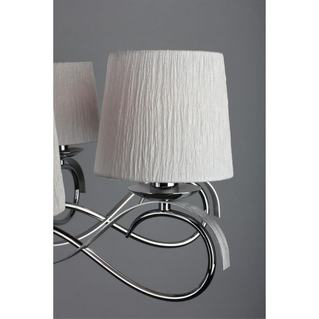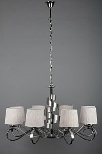 Допускается отличие страны-изготовителя, указанной в характеристиках. Линии производства могут находиться в нескольких государствах. Это не влияет на качество изготовления товара: все заводы данного бренда работают по общим стандартам, а готовые изделия проходят соответствующий контроль.Китай Коллекция Genoa ЦветЦвет арматуры Хром Цвет Хром Материал арматуры Металл Цвет плафона Белый Материал плафона Ткань РазмерыВысота (мм) 1200 Диаметр (мм) 850 Высота минимальная (мм) 600 Ширина (мм) 850 Возможность регулировки высоты Есть ЭлектрикаКоличество ламп (шт) 8 Цоколь E14 Тип лампы Светодиодная, Накаливания, Энергосберегающая (КЛЛ) Лампочки в комплекте Нет в комплекте Возможность подключение диммера Есть Мощность лампы (Вт) 40W Общая мощность (Вт) 320 Напряжение (В) 220 Световой поток 3360 Дополнительная информацияСпособ крепления Крюк Степень защиты (IP) IP20 Вес (Кг) 5.2 Тип подвеса На цепи -