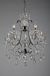 Допускается отличие страны-изготовителя, указанной в характеристиках. Линии производства могут находиться в нескольких государствах. Это не влияет на качество изготовления товара: все заводы данного бренда работают по общим стандартам, а готовые изделия проходят соответствующий контроль.Китай Коллекция Parma ЦветЦвет арматуры Хром, Прозрачный Цвет Хром Материал арматуры Металл, Стекло Цвет декора прозрачный Материал декора Хрусталь РазмерыВысота (мм) 1100 Диаметр (мм) 550 Высота минимальная (мм) 750 Ширина (мм) 550 Возможность регулировки высоты Есть ЭлектрикаКоличество ламп (шт) 5 Цоколь E14 Тип лампы Светодиодная, Накаливания, Энергосберегающая (КЛЛ) Лампочки в комплекте Нет в комплекте Возможность подключение диммера Есть Мощность лампы (Вт) 40W Общая мощность (Вт) 200 Напряжение (В) 220 Дополнительная информацияСтепень защиты (IP) IP20 Вес (Кг) 5,3 Тип подвеса На цепи -