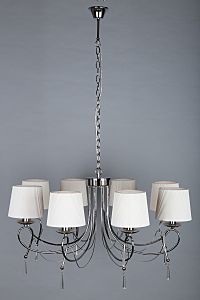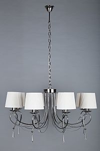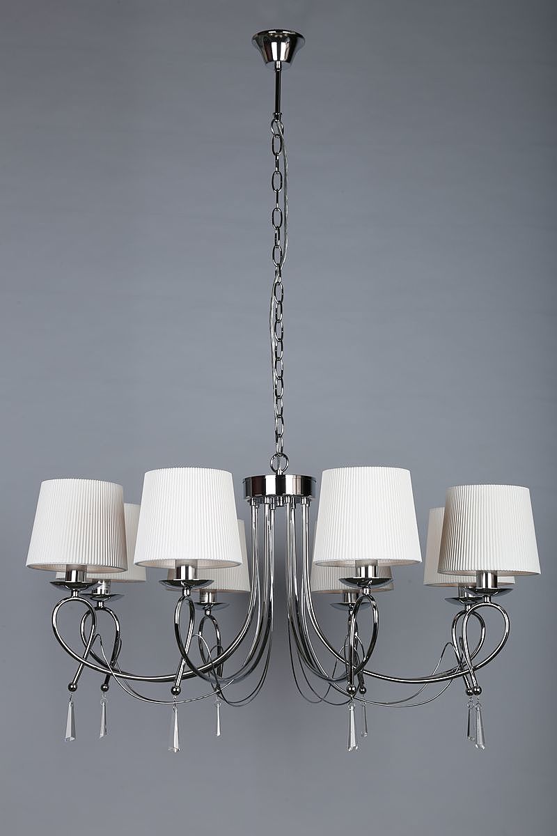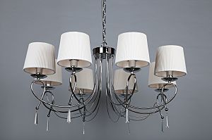 Допускается отличие страны-изготовителя, указанной в характеристиках. Линии производства могут находиться в нескольких государствах. Это не влияет на качество изготовления товара: все заводы данного бренда работают по общим стандартам, а готовые изделия проходят соответствующий контроль.Китай Коллекция Sondrio ЦветЦвет арматуры Хром Цвет Хром Материал арматуры Металл Цвет декора прозрачный Цвет плафона Белый Материал декора Хрусталь Материал плафона Ткань РазмерыВысота (мм) 1200 Диаметр (мм) 850 Высота минимальная (мм) 465 Ширина (мм) 850 ЭлектрикаКоличество ламп (шт) 8 Цоколь E14 Мощность лампы (Вт) 40W Напряжение (В) 220 Дополнительная информацияСтепень защиты (IP) IP20 Вес (Кг) 5.2 Тип подвеса На цепи -