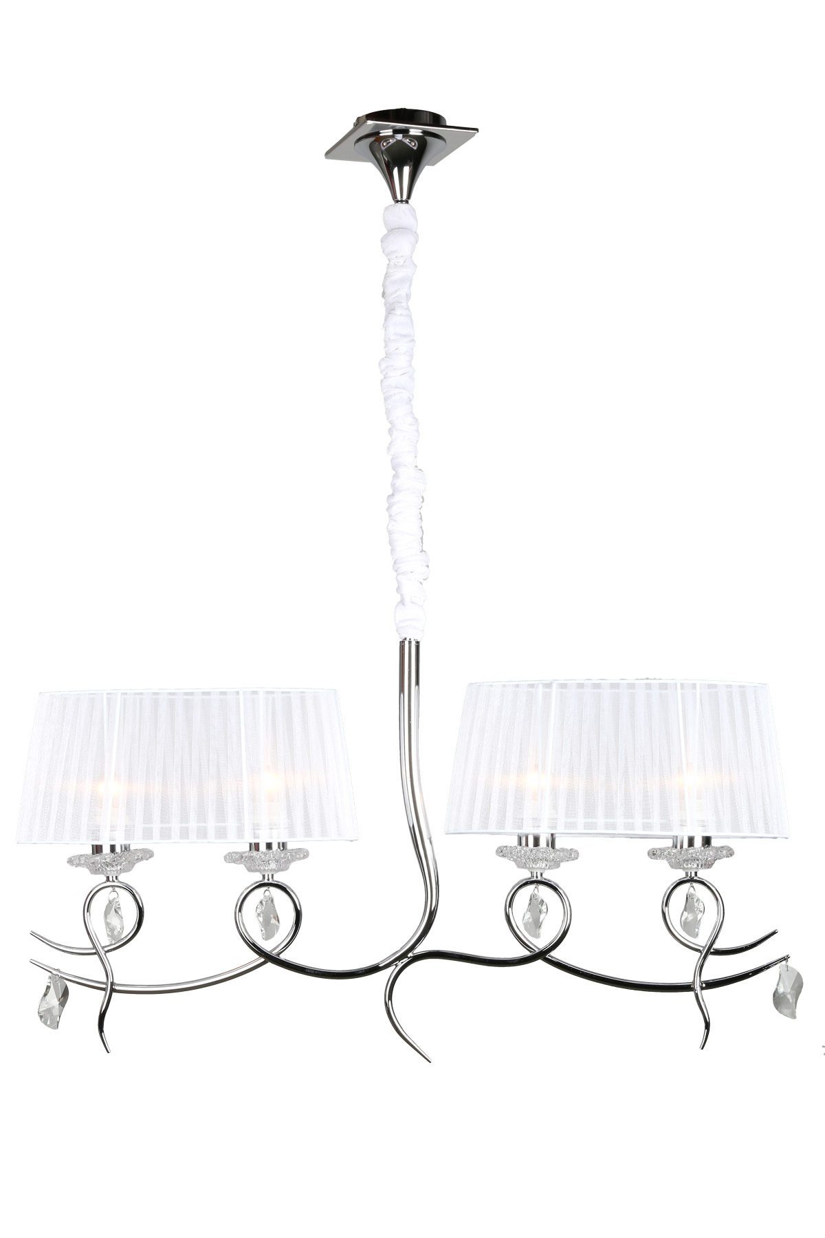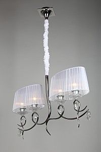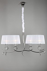 Допускается отличие страны-изготовителя, указанной в характеристиках. Линии производства могут находиться в нескольких государствах. Это не влияет на качество изготовления товара: все заводы данного бренда работают по общим стандартам, а готовые изделия проходят соответствующий контроль.Китай Коллекция Rieti ЦветЦвет арматуры Хром Цвет Хром Материал арматуры Металл Цвет декора прозрачный Цвет плафона Белый Материал декора Хрусталь Материал плафона Ткань РазмерыВысота (мм) 1500 Длина (мм) 200 Ширина (мм) 910 ЭлектрикаКоличество ламп (шт) 4 Цоколь E27 Мощность лампы (Вт) 40W Напряжение (В) 220 Дополнительная информацияСтепень защиты (IP) IP20 Вес (Кг) 2,3 Тип подвеса На цепи -
