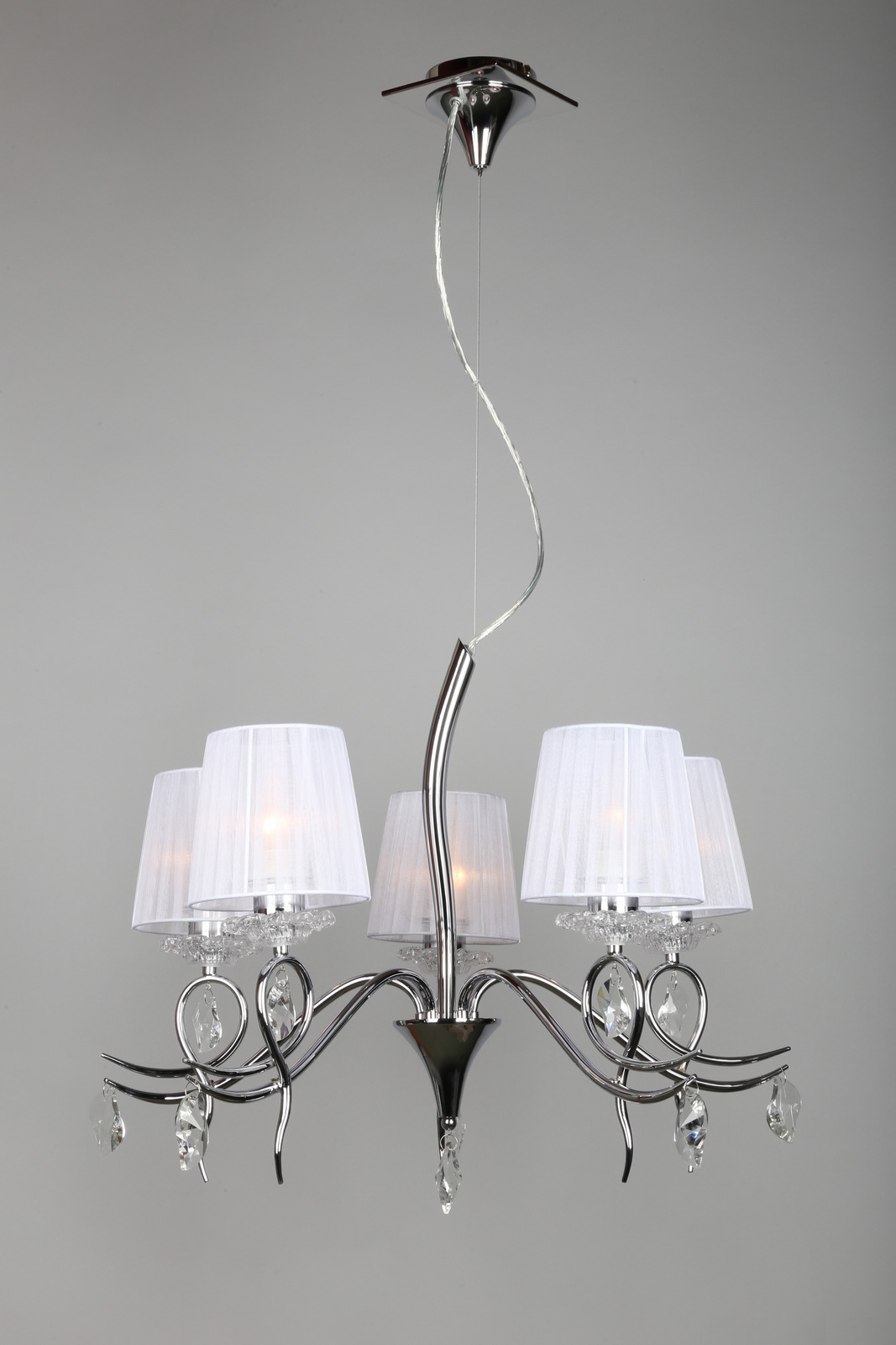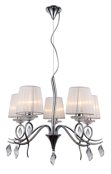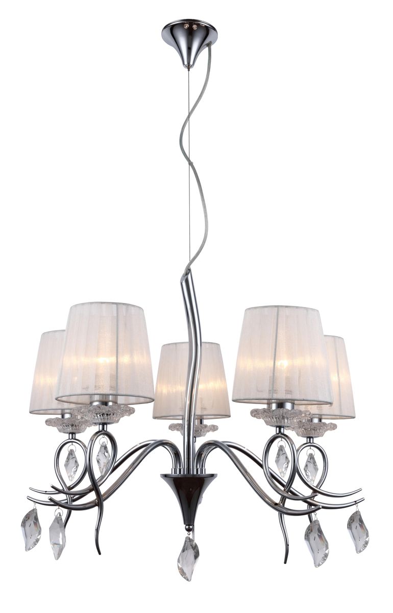 Допускается отличие страны-изготовителя, указанной в характеристиках. Линии производства могут находиться в нескольких государствах. Это не влияет на качество изготовления товара: все заводы данного бренда работают по общим стандартам, а готовые изделия проходят соответствующий контроль.Китай Коллекция Rieti ЦветЦвет арматуры Хром Цвет Хром Материал арматуры Металл Цвет декора прозрачный Цвет плафона Белый Материал декора Хрусталь Материал плафона Ткань РазмерыВысота (мм) 1500 Диаметр (мм) 710 Высота минимальная (мм) 740 Ширина (мм) 710 ЭлектрикаКоличество ламп (шт) 5 Цоколь E27 Мощность лампы (Вт) 40W Напряжение (В) 220 Дополнительная информацияСтепень защиты (IP) IP20 Вес (Кг) 7 Тип подвеса На цепи -