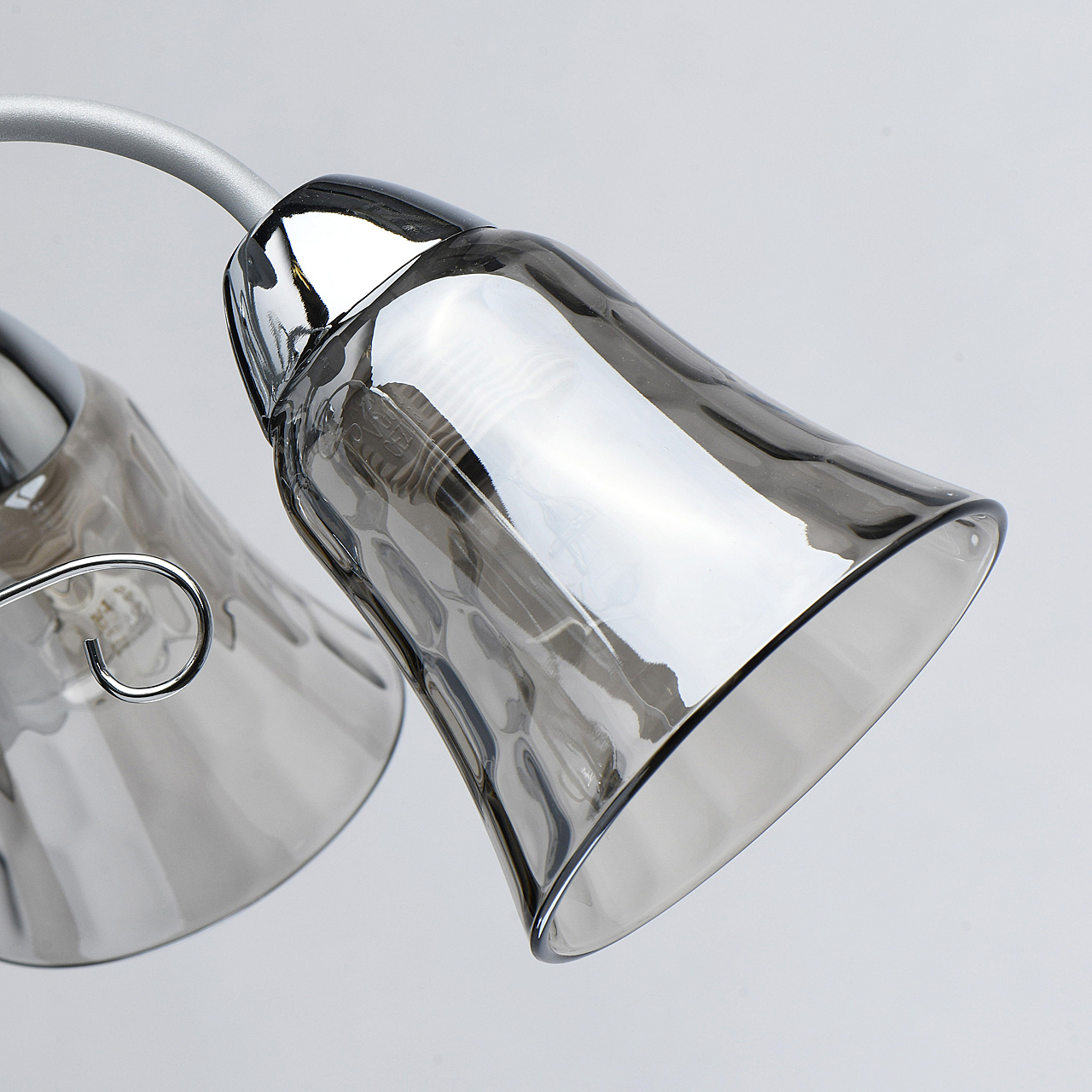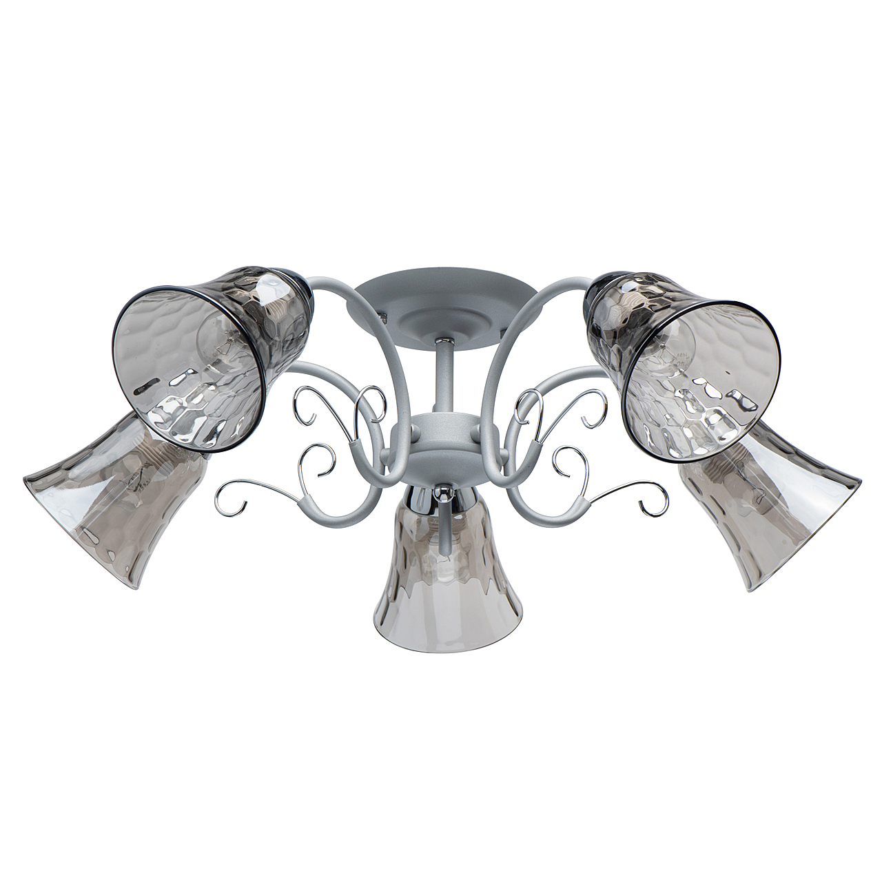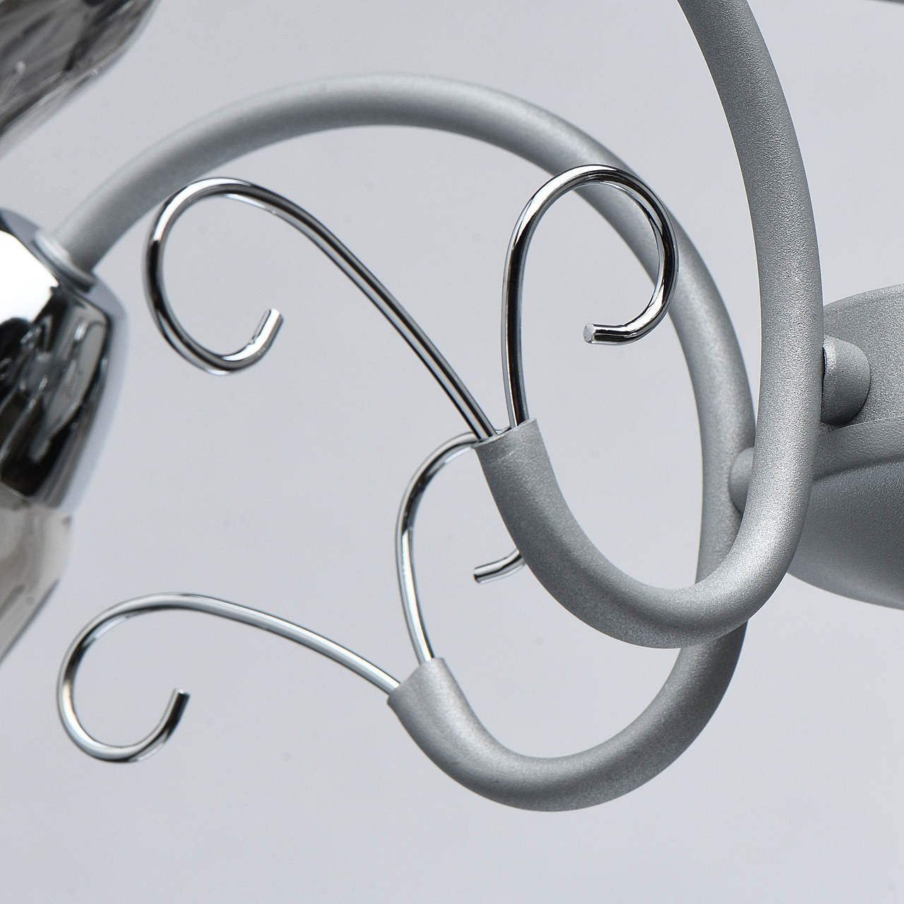 Новый оттенок серебра в сочетании с глянцевым хромом актуален в современных интерьерах.Стекло плафонов в дымчатом цвете обеспечивает комфортный световой поток.Рельефные плафоны создают игру света.Компактная высота модели идеальна для стандартной высоты потолка.