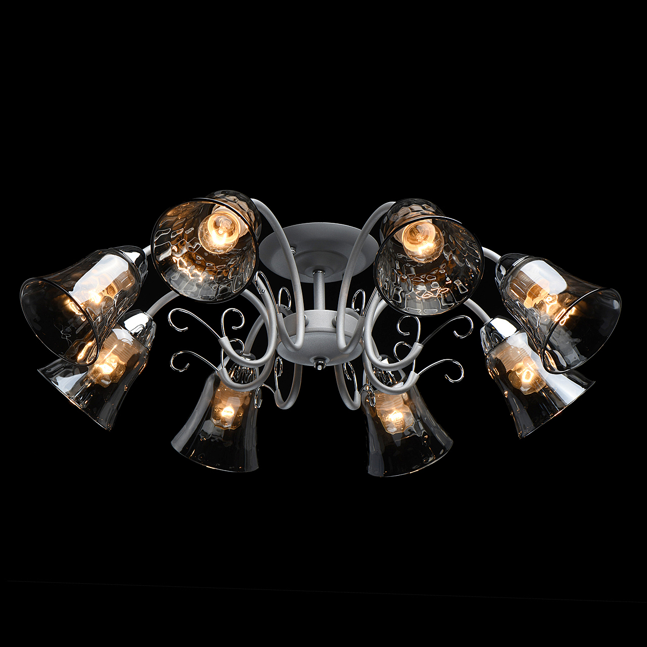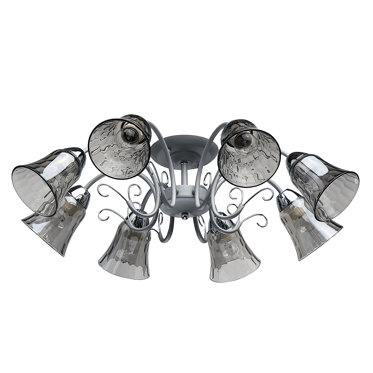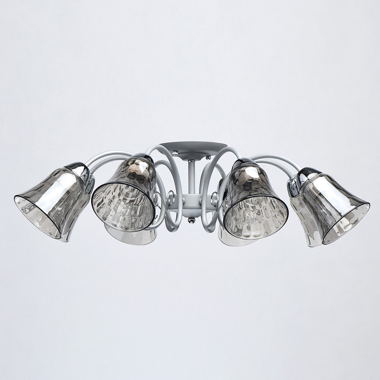 Новый оттенок серебра в сочетании с глянцевым хромом актуален в современных интерьерах.Стекло плафонов в дымчатом цвете обеспечивает комфортный световой поток.Рельефные плафоны создают игру света.Компактная высота модели идеальна для стандартной высоты потолка.