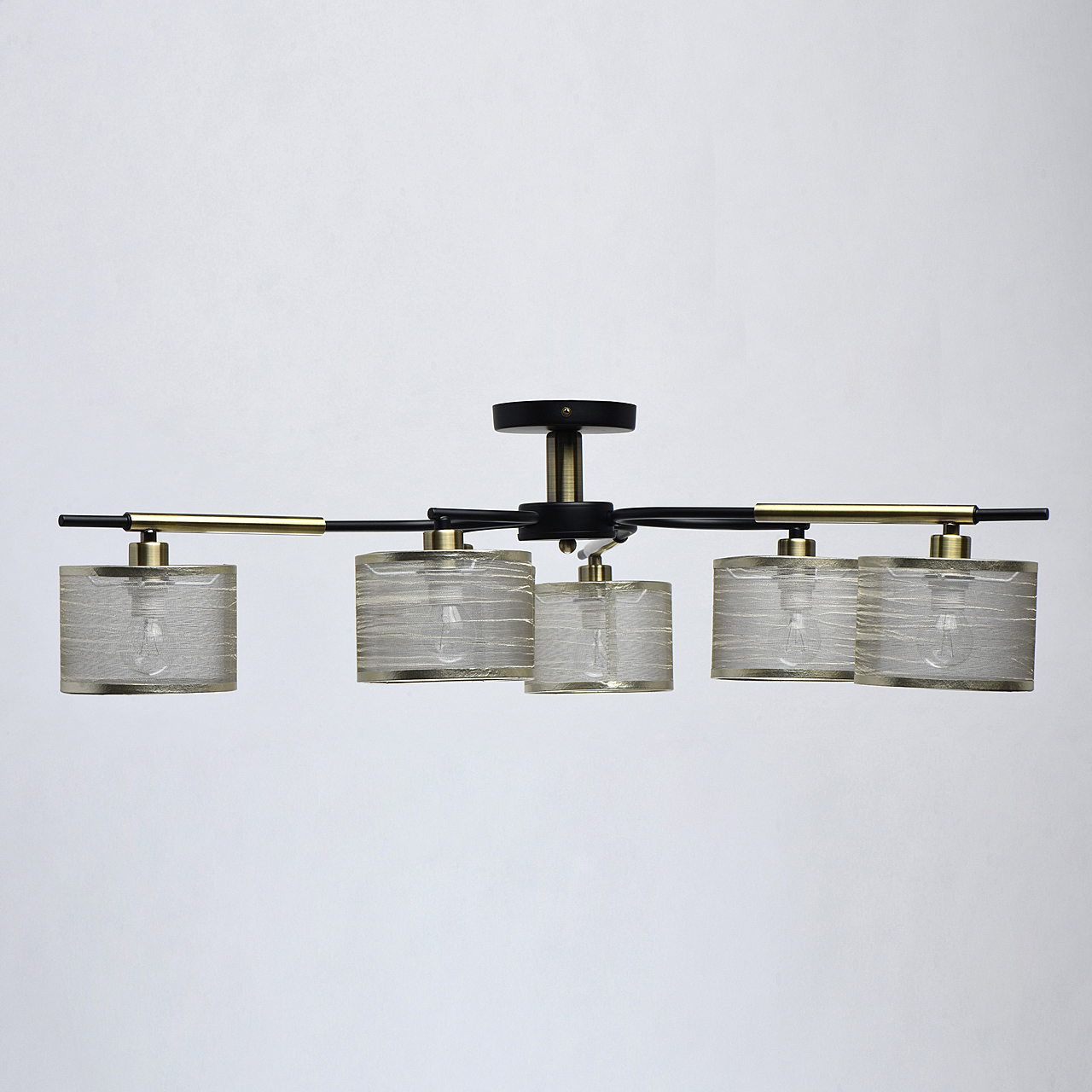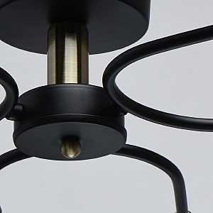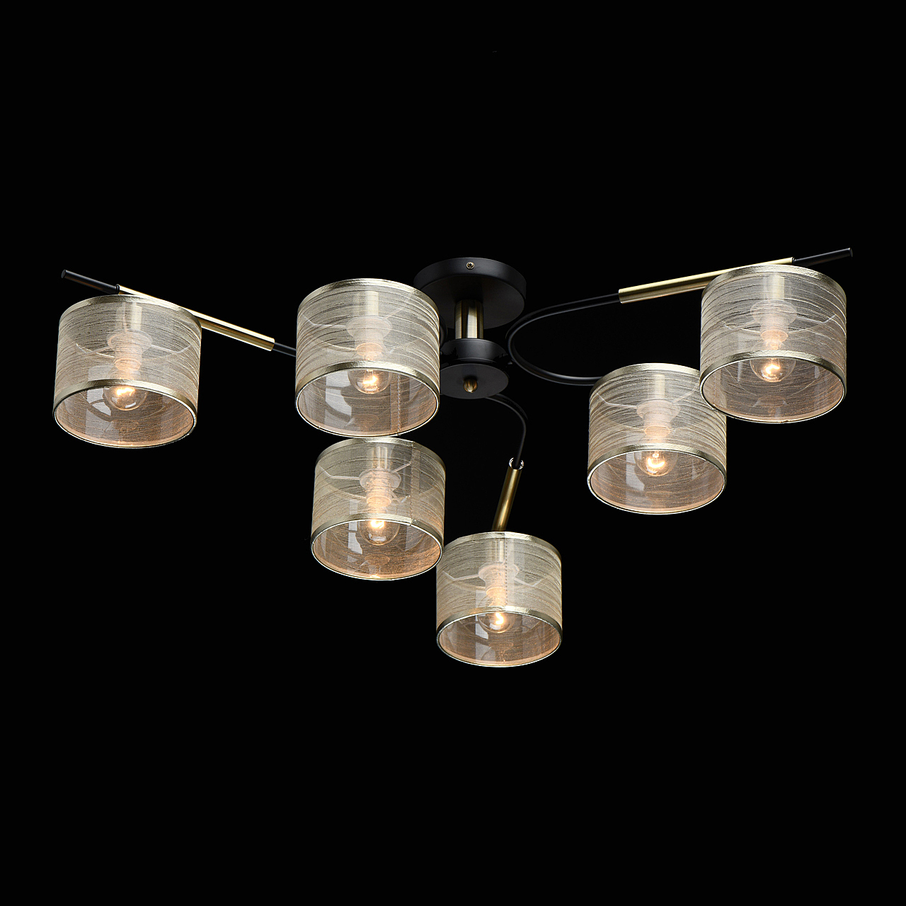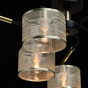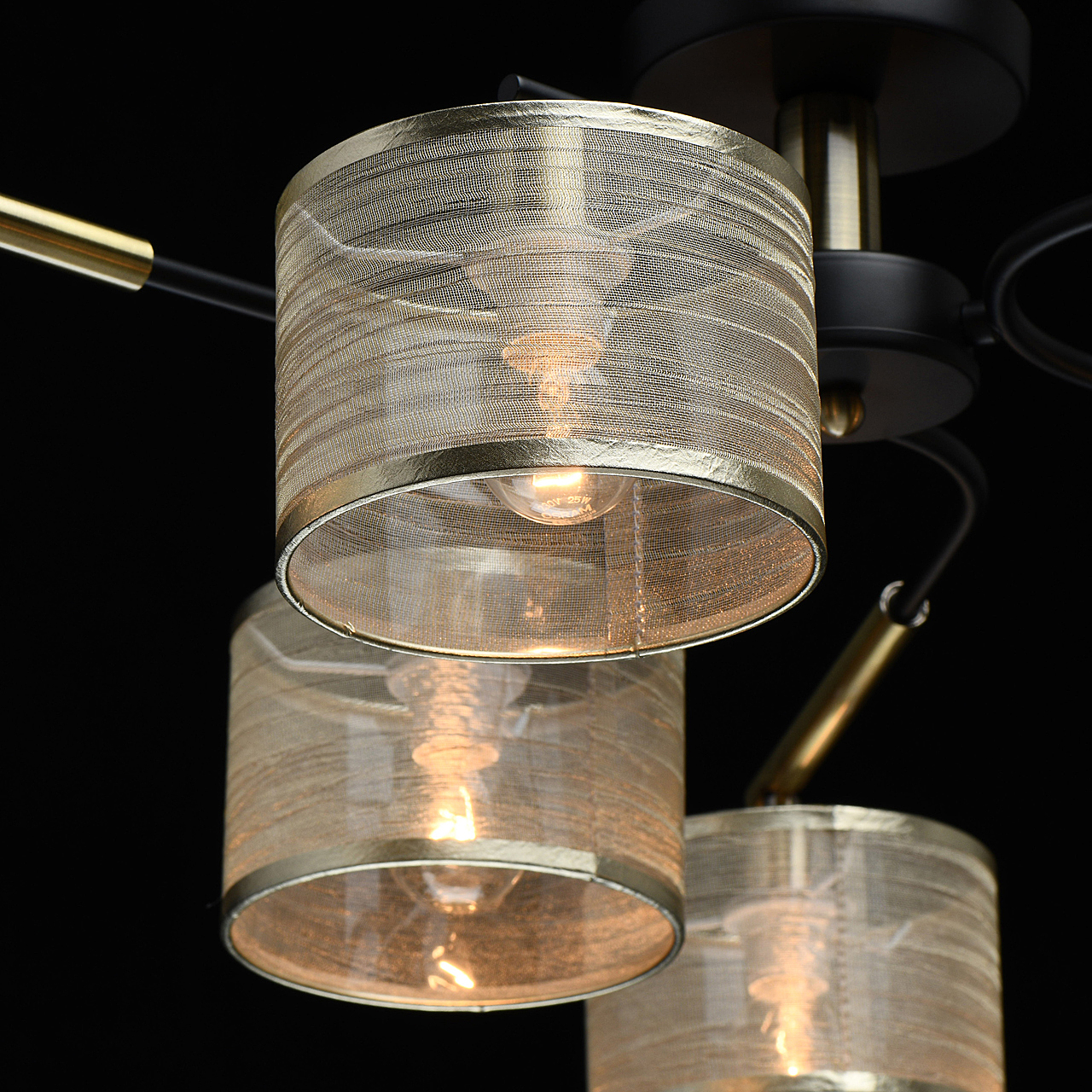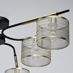Ассиметрия раздвоенных рожков придает легкости модели.Компактная высота светильника идеальна для стандартной высоты потолка. Абажуры из органзы с фактурой натурального плетения создают комфортный свет.Семья из бра, потолочных светильников на 6 и 8 ламп.