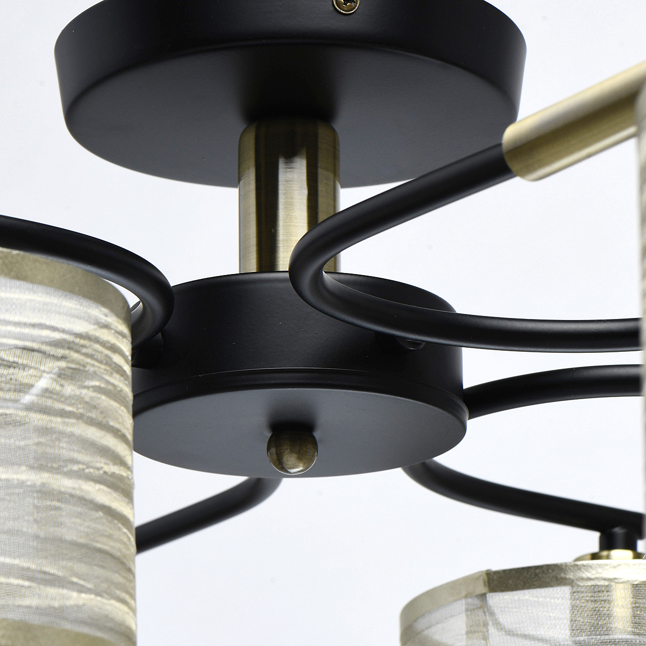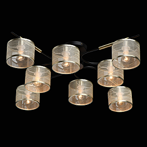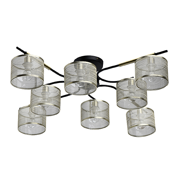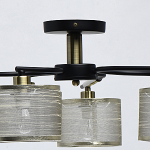 Ассиметрия раздвоенных рожков придает легкости модели.Компактная высота светильника идеальна для стандартной высоты потолка. Абажуры из органзы с фактурой натурального плетения создают комфортный свет.Семья из бра, потолочных светильников на 6 и 8 ламп.