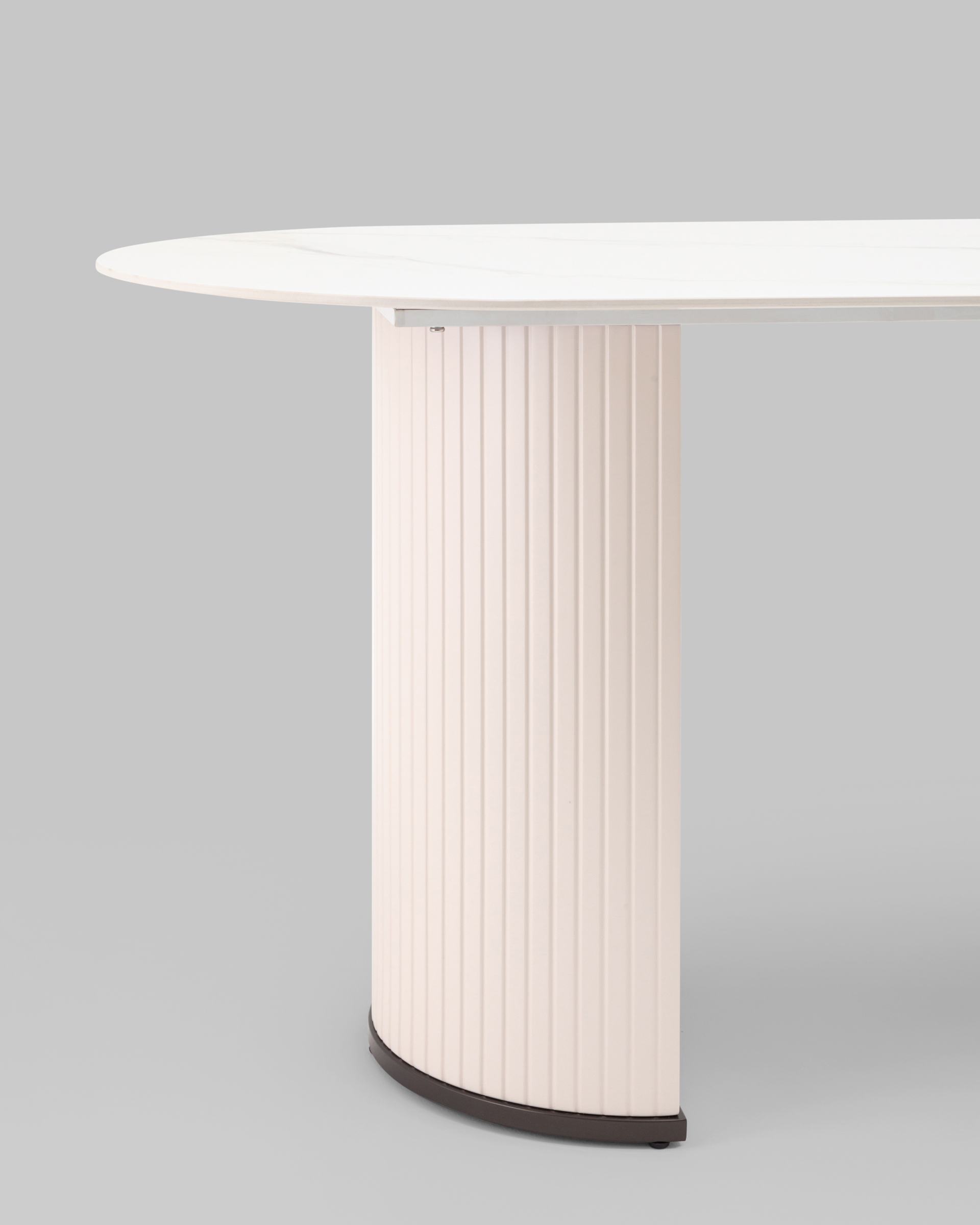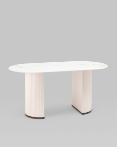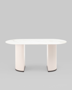 Стол обеденный Opera 160х90 столешница белый мрамор керамика ножки плиссе металл