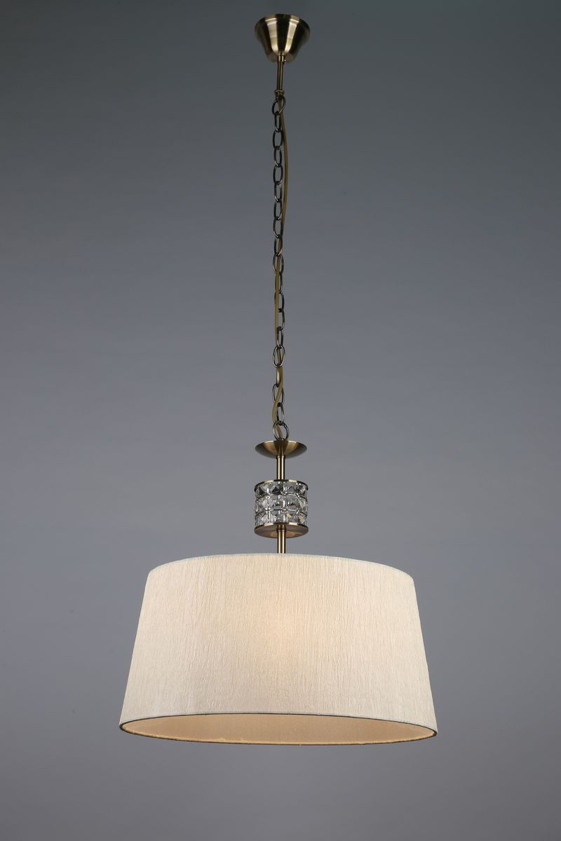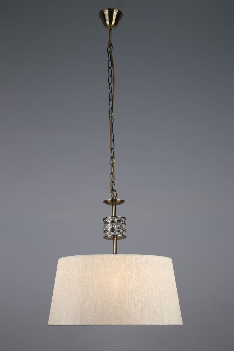 Допускается отличие страны-изготовителя, указанной в характеристиках. Линии производства могут находиться в нескольких государствах. Это не влияет на качество изготовления товара: все заводы данного бренда работают по общим стандартам, а готовые изделия проходят соответствующий контроль.Китай Коллекция Pavia ЦветЦвет арматуры Бронза Цвет Бежевый Материал арматуры Металл Цвет декора прозрачный Цвет плафона бежевый Материал декора Хрусталь Материал плафона Ткань РазмерыВысота (мм) 1150 Диаметр (мм) 450 Высота минимальная (мм) 460 Ширина (мм) 450 ЭлектрикаКоличество ламп (шт) 1 Цоколь E27 Тип лампы Накаливания, Энергосберегающая (КЛЛ) Мощность лампы (Вт) 60W Напряжение (В) 220 Дополнительная информацияСтепень защиты (IP) IP20 Вес (Кг) 2,00 Тип подвеса На цепи Количество подвесов Одиночный подвес -
