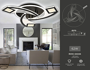 Допускается отличие страны-изготовителя, указанной в характеристиках. Линии производства могут находиться в нескольких государствах. Это не влияет на качество изготовления товара: все заводы данного бренда работают по общим стандартам, а готовые изделия проходят соответствующий контроль.Россия Коллекция Original ЦветЦвет арматуры Черный Цвет Черный Материал арматуры Металл Цвет плафона прозрачный Материал плафона Акрил РазмерыВысота (мм) 75 Диаметр (мм) 560 Ширина (мм) 560 ЭлектрикаКоличество ламп (шт) 1 Цоколь LED Тип лампы Светодиодная Мощность лампы (Вт) 62 Напряжение (В) 220 Световой поток 4650 Срок службы, ч 50000 Цветовая температура 3000-6400 Площадь освещения 20 Дополнительная информацияСпособ крепления Планка Степень защиты (IP) IP20 Техническая оссобеность Регулировка яркости, Полностью светодиодная, Регулировка цветовой температуры Тип управления Пульт ДУ -