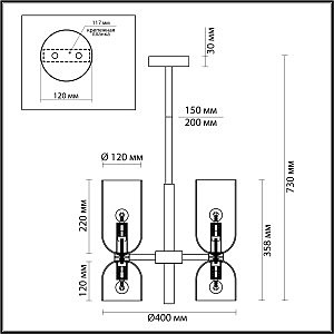 Допускается отличие страны-изготовителя, указанной в характеристиках. Линии производства могут находиться в нескольких государствах. Это не влияет на качество изготовления товара: все заводы данного бренда работают по общим стандартам, а готовые изделия проходят соответствующий контроль.Италия Коллекция Orinoco ЦветЦвет арматуры бронзовый Цвет Бронза Материал арматуры Металл Цвет плафона Белый Материал плафона Стекло РазмерыВысота (мм) 730 Длина (мм) 400 Диаметр (мм) 400 Высота минимальная (мм) 358 Ширина (мм) 400 ЭлектрикаКоличество ламп (шт) 6 Цоколь E14 Тип лампы Накаливания Мощность лампы (Вт) 60 Общая мощность (Вт) 360 Напряжение (В) 220 Площадь освещения 18 Дополнительная информацияСпособ крепления Планка Степень защиты (IP) IP20 Вес (Кг) 4,300 -
