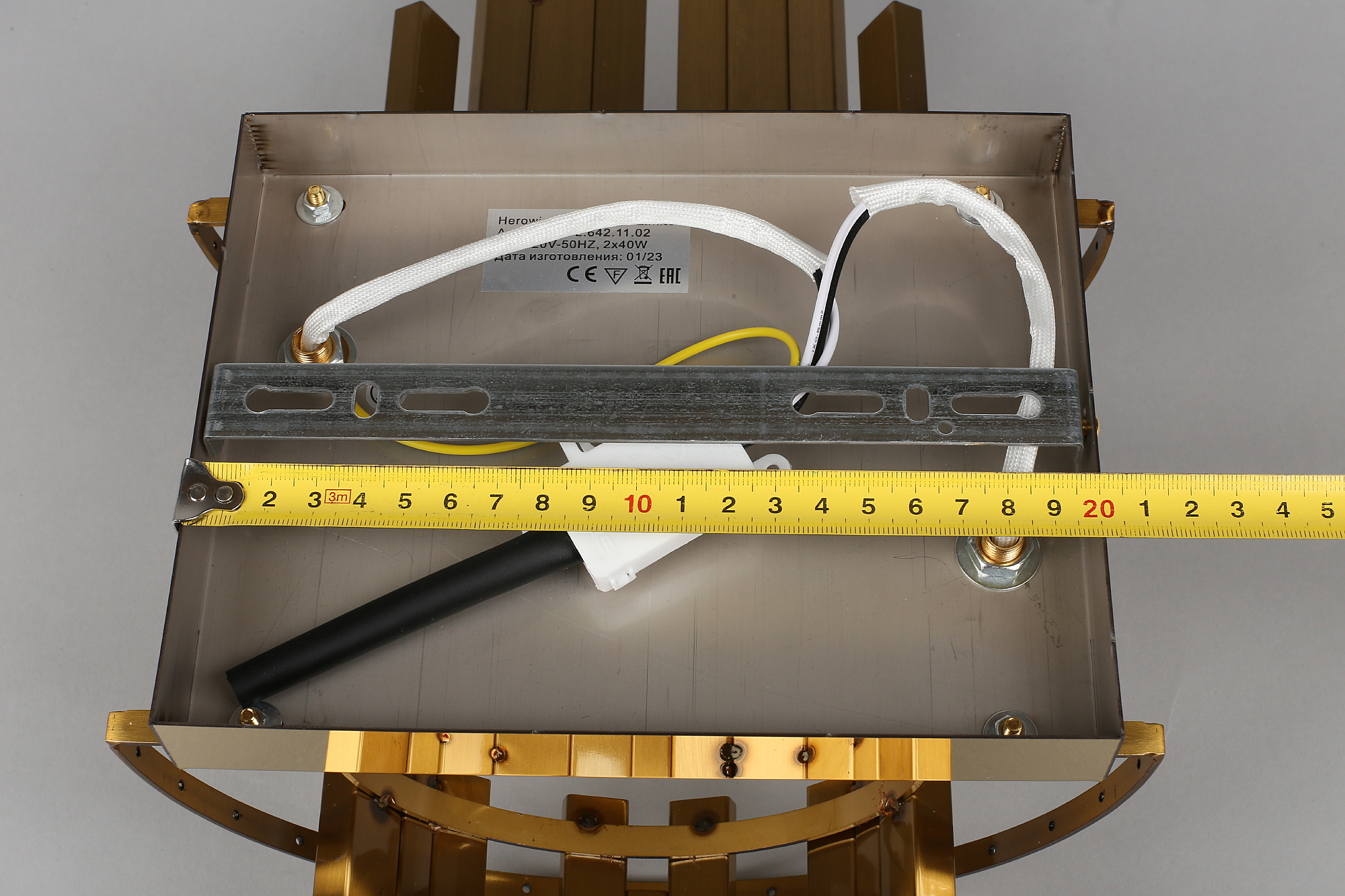 Допускается отличие страны-изготовителя, указанной в характеристиках. Линии производства могут находиться в нескольких государствах. Это не влияет на качество изготовления товара: все заводы данного бренда работают по общим стандартам, а готовые изделия проходят соответствующий контроль.Польша Коллекция Ornella ЦветЦвет арматуры Латунь Цвет Латунь Материал арматуры Металл Цвет декора прозрачный Материал декора Хрусталь РазмерыВысота (мм) 600 Ширина (мм) 250 Глубина (мм) 150 ЭлектрикаКоличество ламп (шт) 2 Цоколь E14 Лампочки в комплекте Нет в комплекте Мощность лампы (Вт) 40 Общая мощность (Вт) 80 Световой поток 840 Площадь освещения 4 Дополнительная информацияСпособ крепления Планка Вес (Кг) 2,1 -