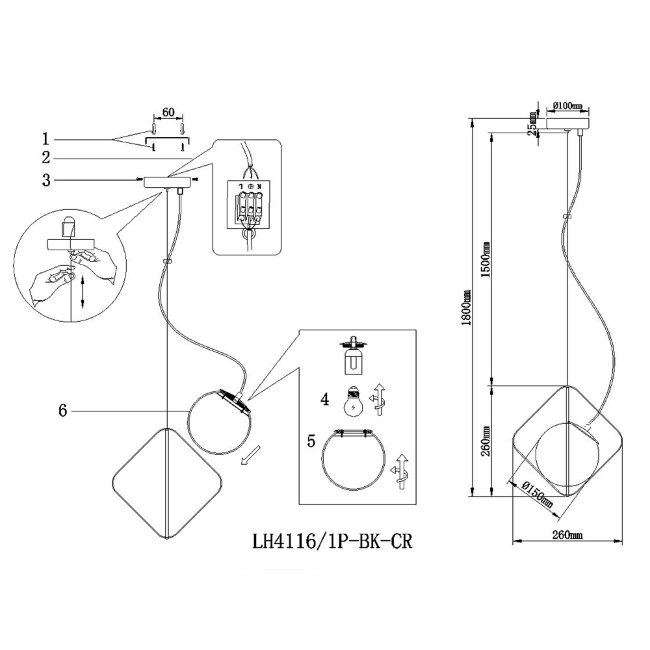 | Артикул | LH4116/1P-BK-CR |