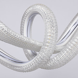 Металлическое основание светильника окрашено в белый цвет. Светодиодные источники света закрыты прозрачным фактурным акрилом.